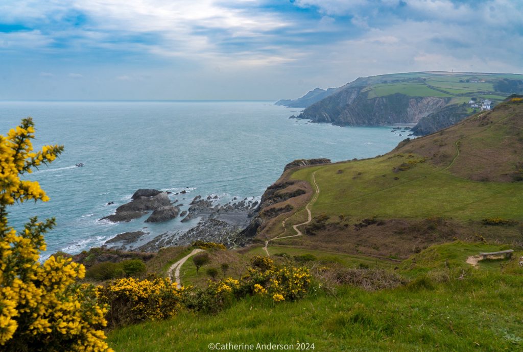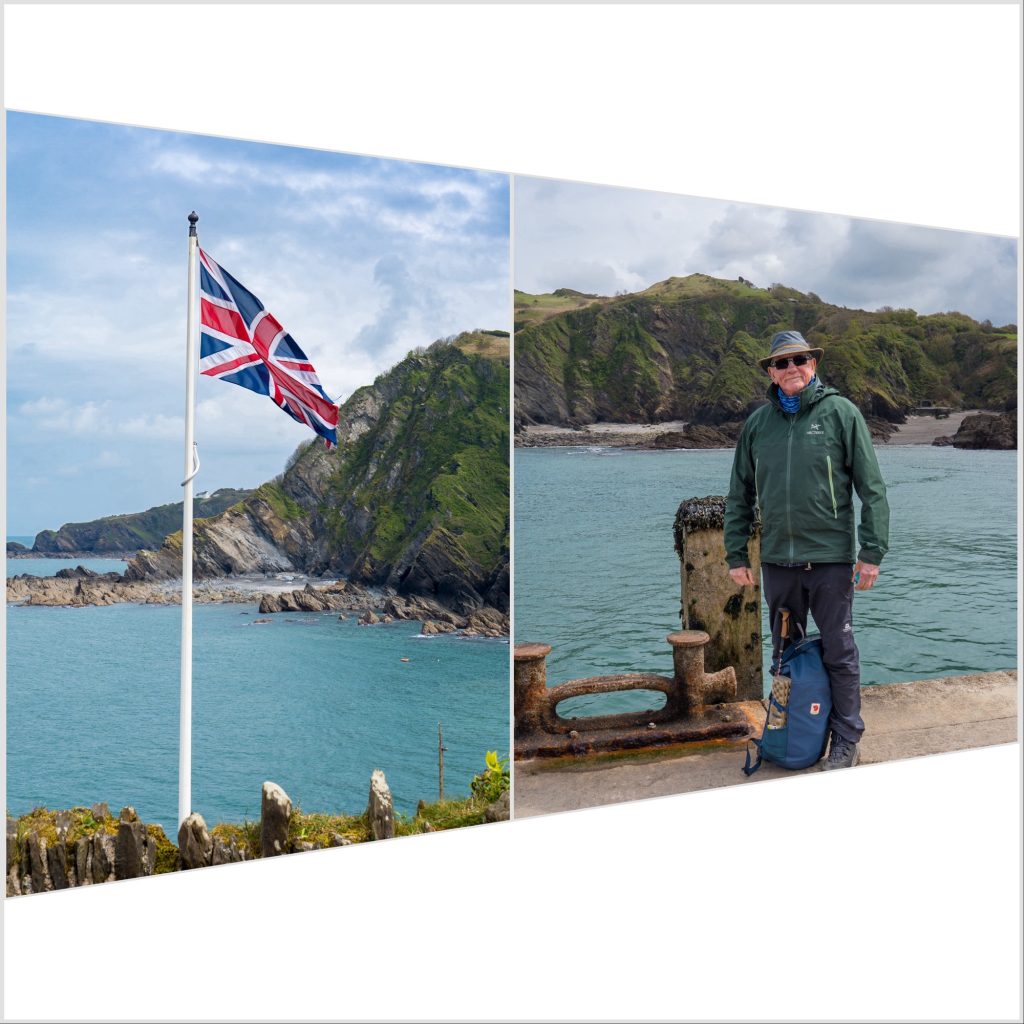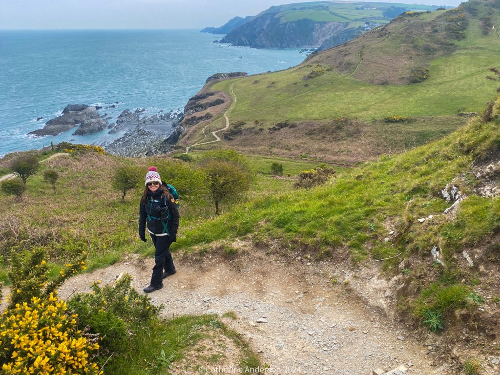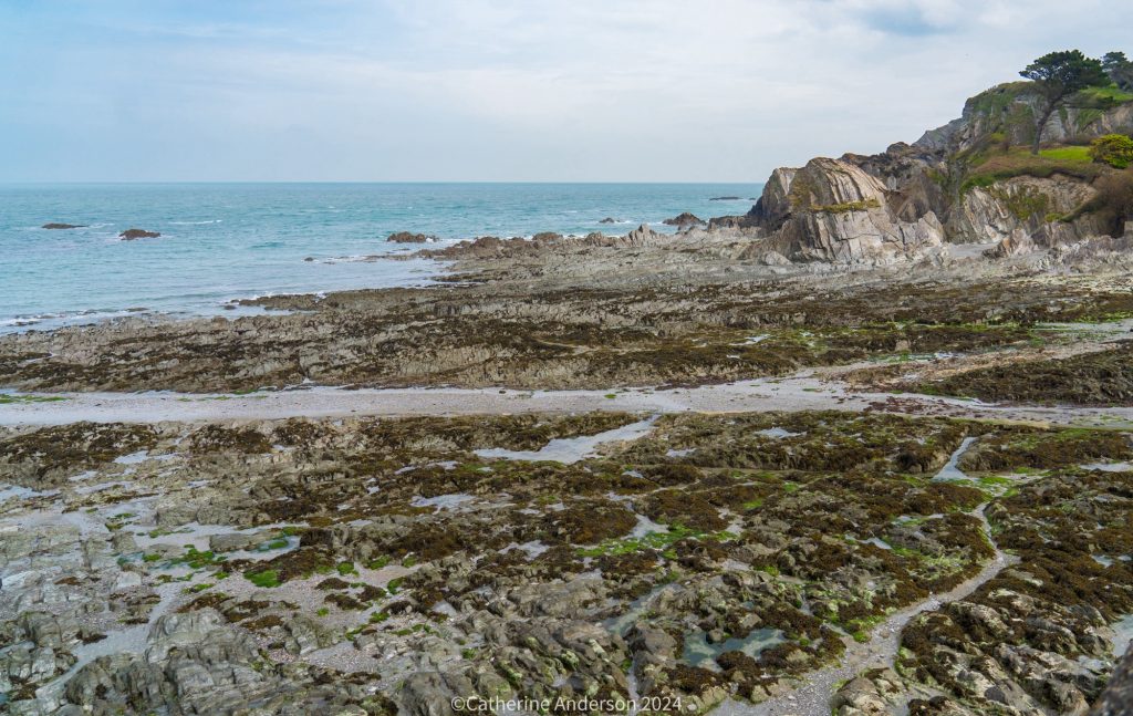 Our final day dawned and we decided to take a walk from the campsite. I plotted a route on Komoot, and we packed up a lunch to take with us. A steep downhill footpath took us to part of the Southwest Coast Path, and a chill wind right off the sea.