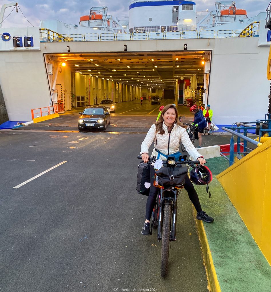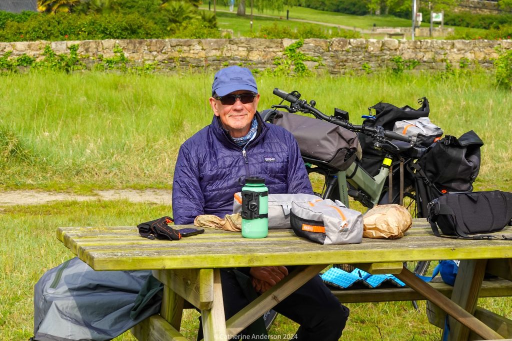 At 5pm we were able to check into our accommodation for the evening, set in one of Josselin’s largest houses, with a covered deck out the back where we could charge up the bike batteries and keep them dry.