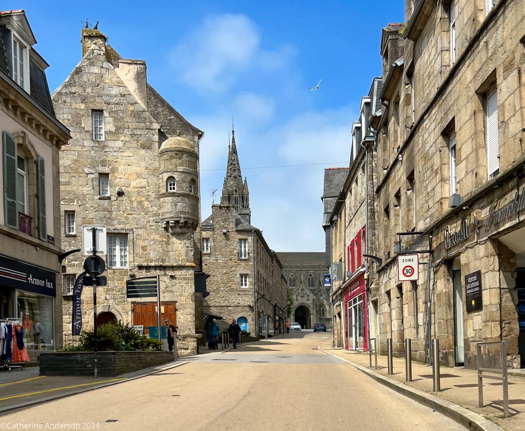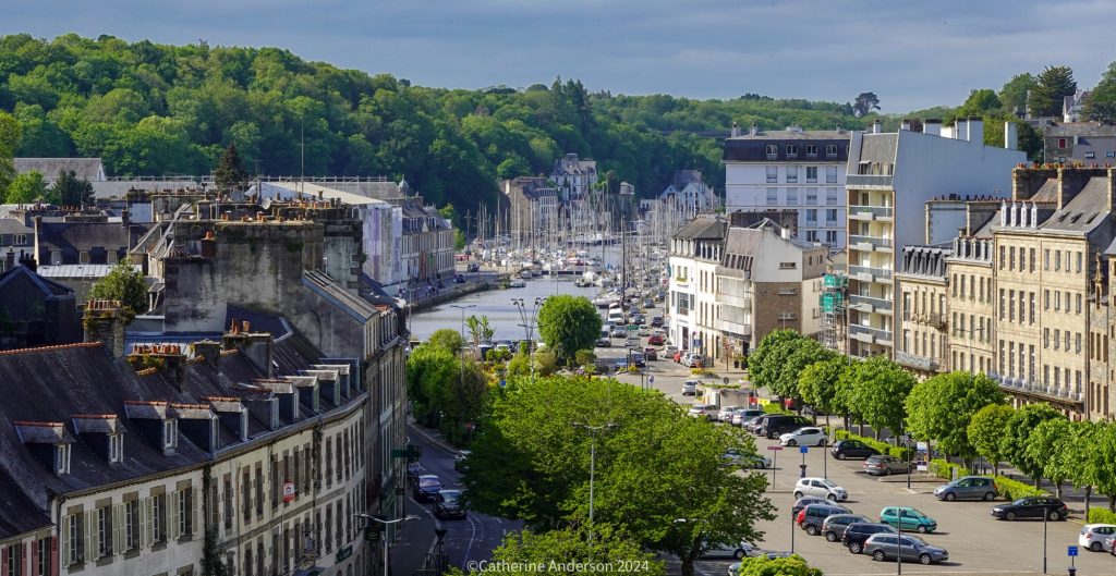 Pontivy is a small town, like Morlaix, full of half-timbered buildings, but unlike Morlaix, only a few places to eat and drink. And eating and drinking was on our minds once we had arrived at our hotel, as we were meeting our friends from Wales, Lauris and Ed. They were on holiday in France, and had diverted their journey to come and meet us for an evening.