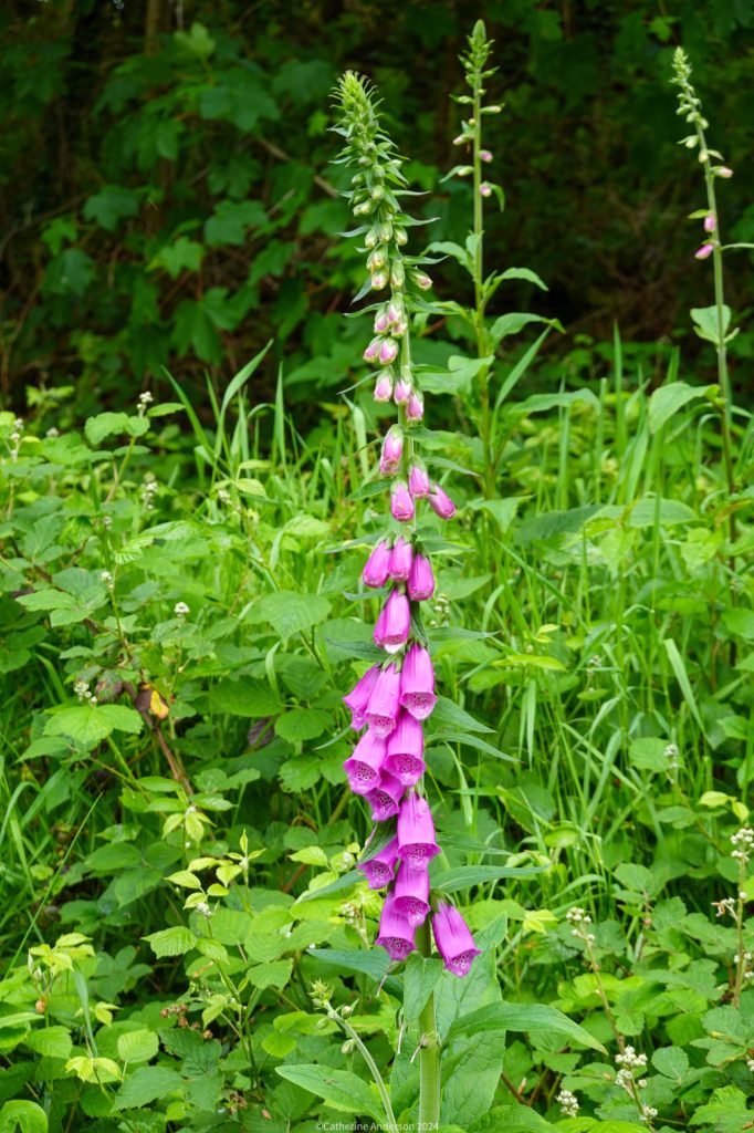 Brightly coloured Foxgloves offer a break from the multitude of greens