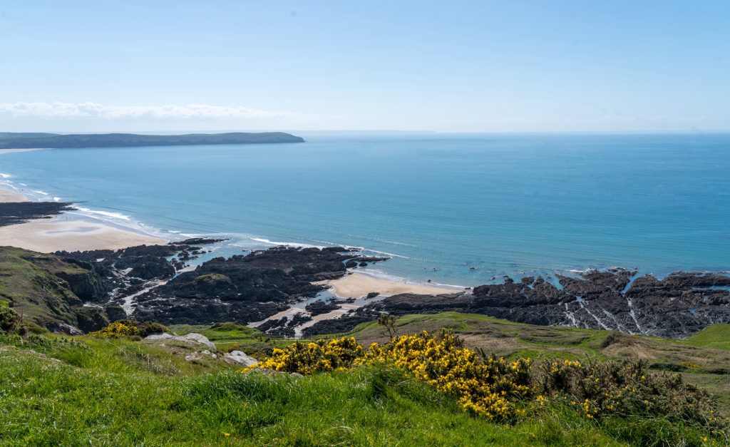 We arrived to a spectacular blue sky and generally stunning afternoon. It’s only a 90 minute drive from home, so theoretically could be a day trip, but it was great to know we had some solid time to explore this piece of the coast. So after getting Truffy set up, we jumped in the Jimny and drove to nearby village, Mortehoe for a walk.
