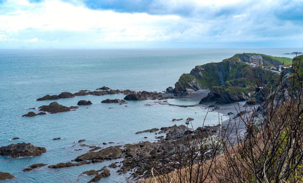 We turned right and wove our way along the cliff top to the next little village, Lee, which sat nestled in a sheltered valley. Lee Bay is a rock-pooler’s paradise, calm and quiet, with plenty of exploring to be done. It was inaccessible on our visit, with a large section of land just behind it being developed for apartments and houses.