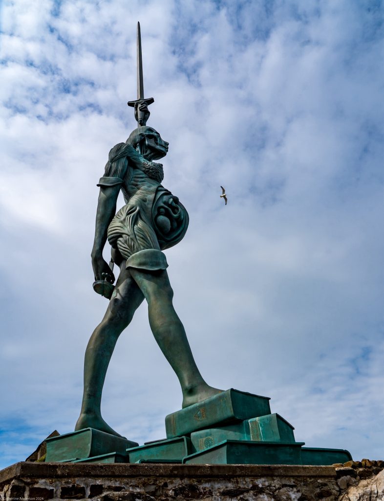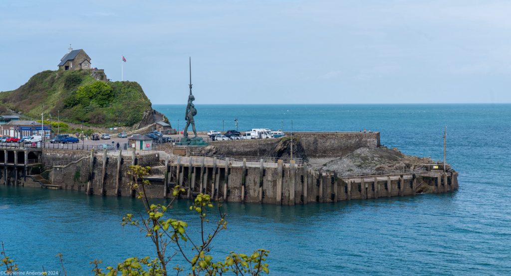 At the entrance to Ilfracombe’s harbour is this rather confronting sculpture – a pregnant woman, stood on a pile of books, half her skin stripped back to reveal her muscles and sinews, the foetus in her womb, thrusting forth a sword into the sky, and holding the scales of justice behind her back. This statue, Verity, was created by Damian Hirst, and is on loan to the town for 20 years. It’s currently the second tallest statue in the UK. More details here.