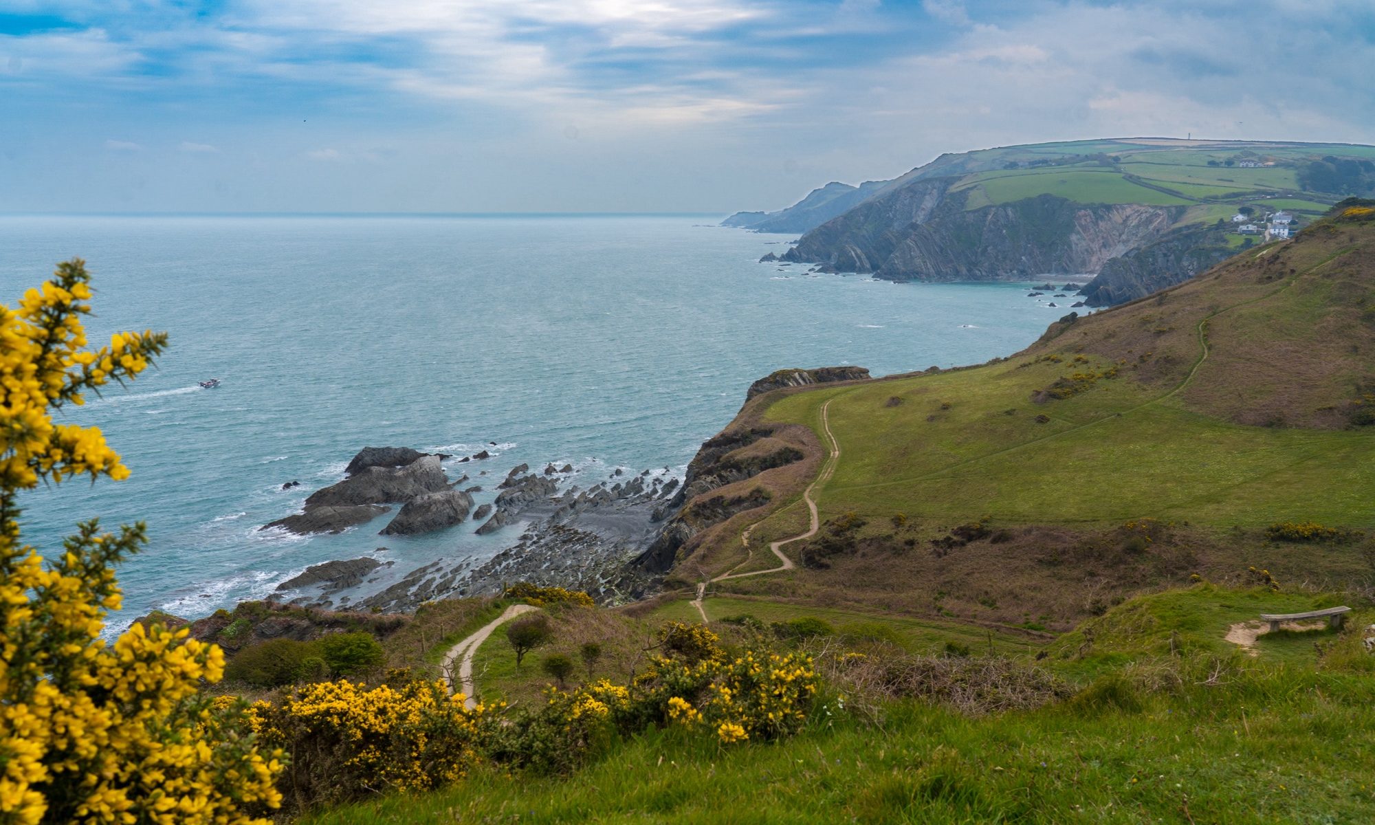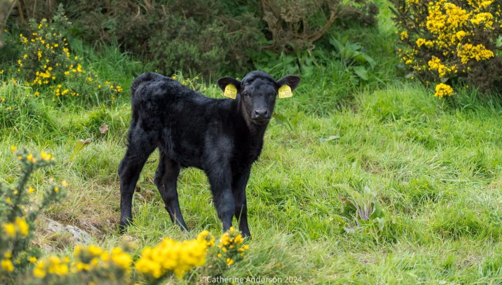 Our cliff top path weaving ahead of usA calf bravely eyes us off from a safe distance, before skittering away to hide behind the brightly flowering gorseBeanies donned against the fresh breeze