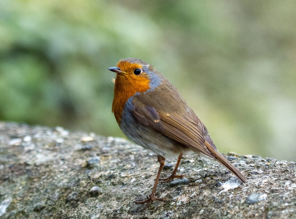 The rocky Lee BayOur lunch companion – one of a pair of somewhat disappointed Robins, miffed to learn we had made ourselves prawn salads rather than sandwiches, but making do with a few spare seeds we had as dressing.