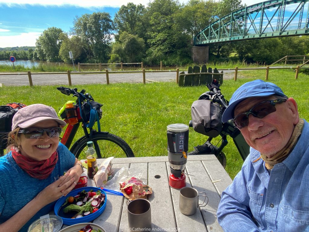 We’d not eaten lunch, and arriving at 2:30pm had low expectations on finding any food. All the cafes in town, even the one kebab shop, were closed, so we rode out to the supermarket and picked up a few bits and pieces for a picnic.