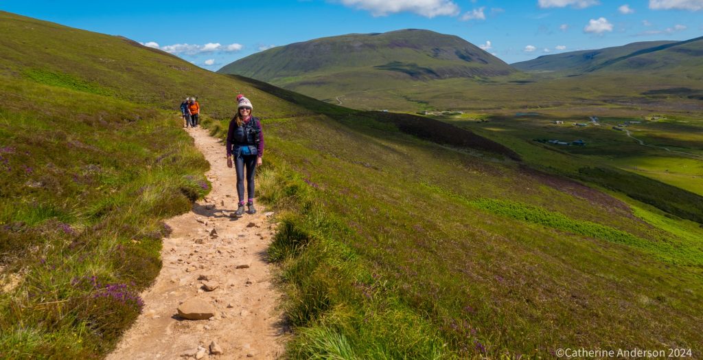Catherine describes her Day 3 with the steep climbing as the only really quite challenging one, and without me holding her back would no doubt have been up among some of the early finishers, if she had chosen to rush it. She has strong legs, great balance, and determination. At the time, she also had a 25% constricted airway, and proudly wrote a message in the walk book for any future hikers with idiopathic subglottic stenosis to inspire them to keep on going.