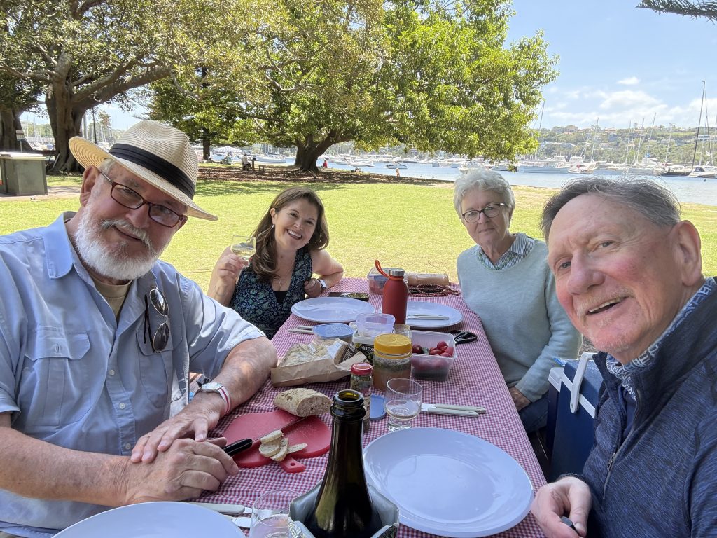 A Sunday afternoon session with oh so many laughsA breakfast catch up with friends from right across the stateRichard and Rosemary – the king and queen of picnics brought us a feast to shareFriends Diane and Mark from Victoria drove up to spend a day with usAnd we caught up with Trish, a neighbour from Somerset who was in Sydney at the same time