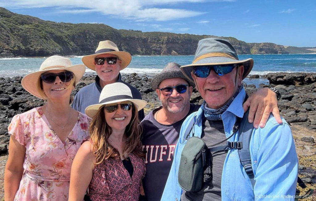 Owen, our guide and host for a few daysA picnic at Cape Schanck (or Schnack as Karen says!) lighthouseCape Schanck LighthouseLooking out into the Bass Strait – next stop TasmaniaA White-faced Heron glides pastTeam photo on the beach – Karen, Chris, me, Owen and Mr A