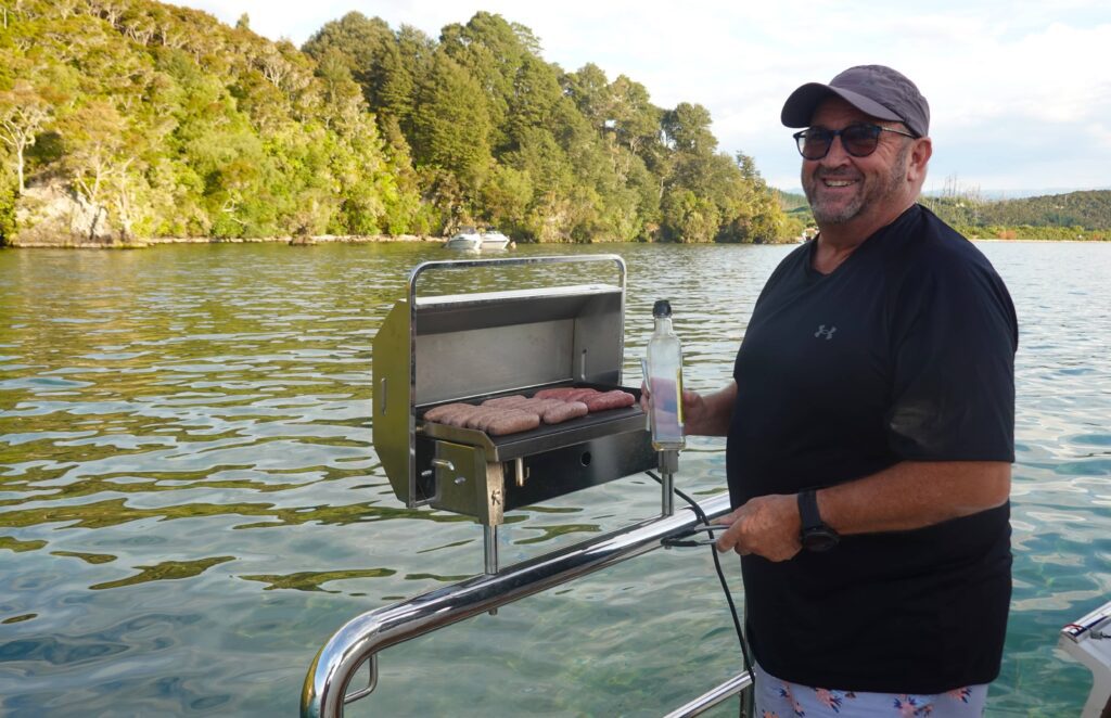 Owen took on chef duties for our BBQVicki, and Owen admire the sunset, while David admires Vicki