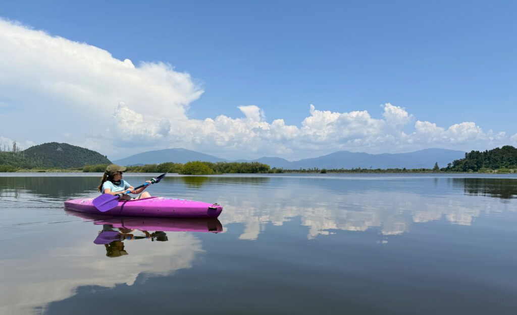 Our time there was just fabulous. Great company, mealtimes full of delicious food, wine and laughter, and more time on the water. Mr A and I went out kayaking, finding the shallow and bird-filled waters hidden behind Motuoapa Bay.