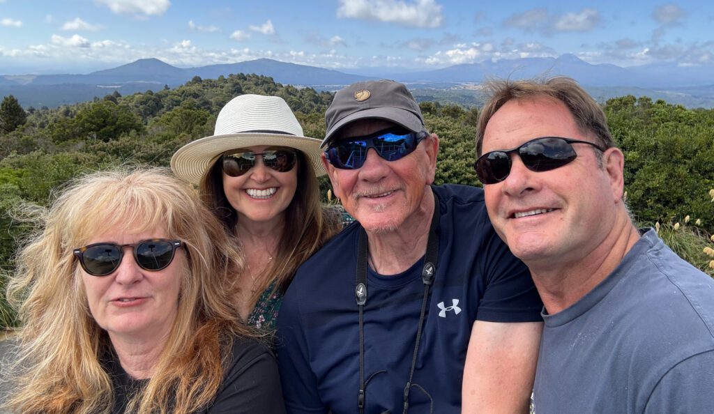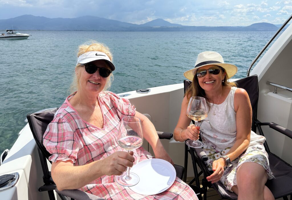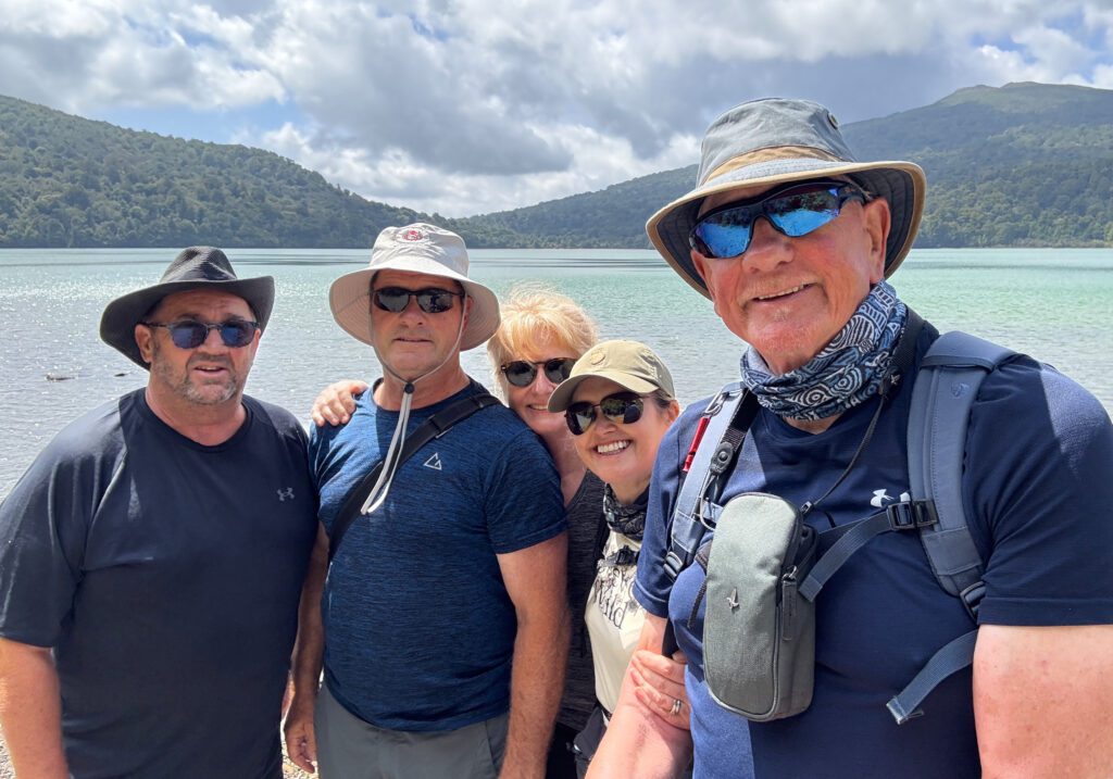 The following day, Owen, Mark and I left in our hire car heading to spectacular Lake Taupo. The weather was warm and sunny, and we arrived just in time to head out on the lake with Owen’s other sister Vicki, and brother-in-law, David, on their boat. Just stunning scenery.