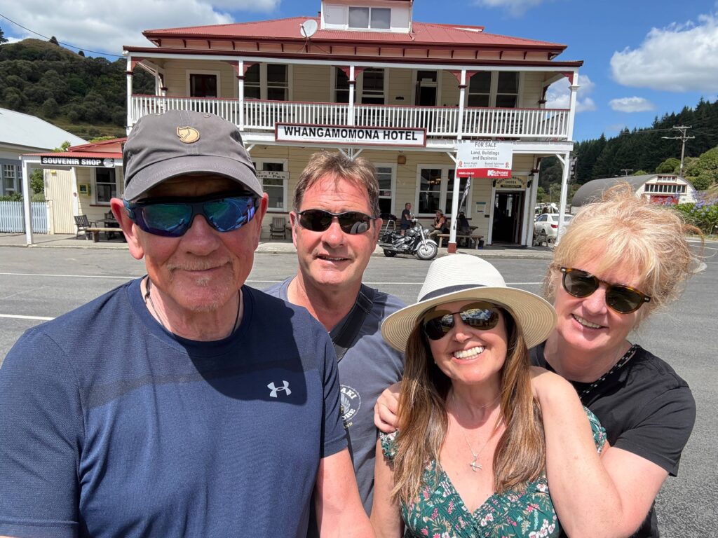 A viewpoint looking out over Ruapehu, Ngauruhoe and TongariroOur journey took us along the scenic and winding Forgotten World Highway (State Highway 43) which followed the Tangarakau River for much of its journeyLunch was at the remote Whangamomona Hotel. Frustrated with local councils, residents declared it ‘The Republic of Whangamōmona’ in 1989, and held their own presidential elections. The famous Republic Day is held biennially in January, Passports can be purchased at the Hotel to ensure safe passage through the Republic…we stuck to burgers and chips!
