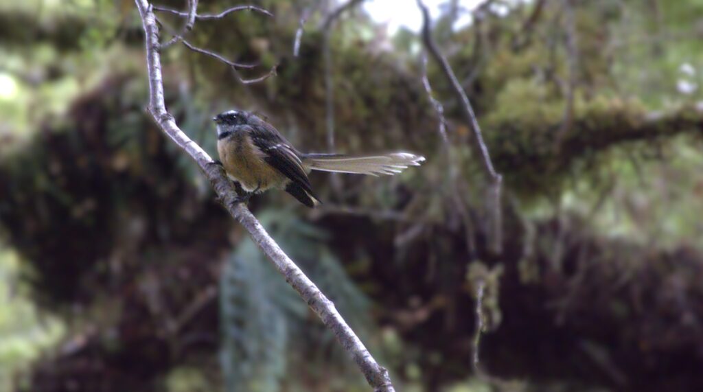 South Island robin (Petroica australis australis) on our nature walk – we saw a lot of these throughout our days walkingNew Zealand Fantail (Pīwakawaka) – friendly insect eater almost omnipresent as we hiked