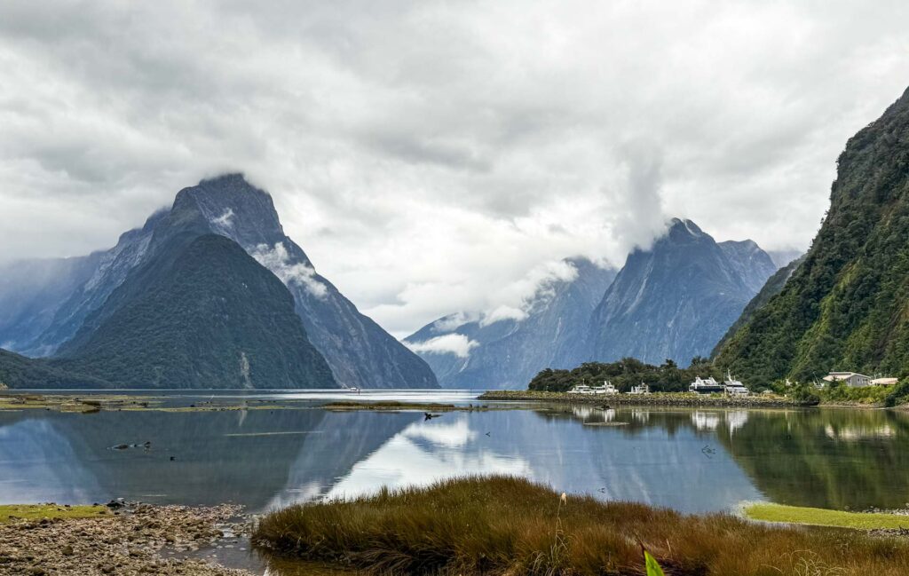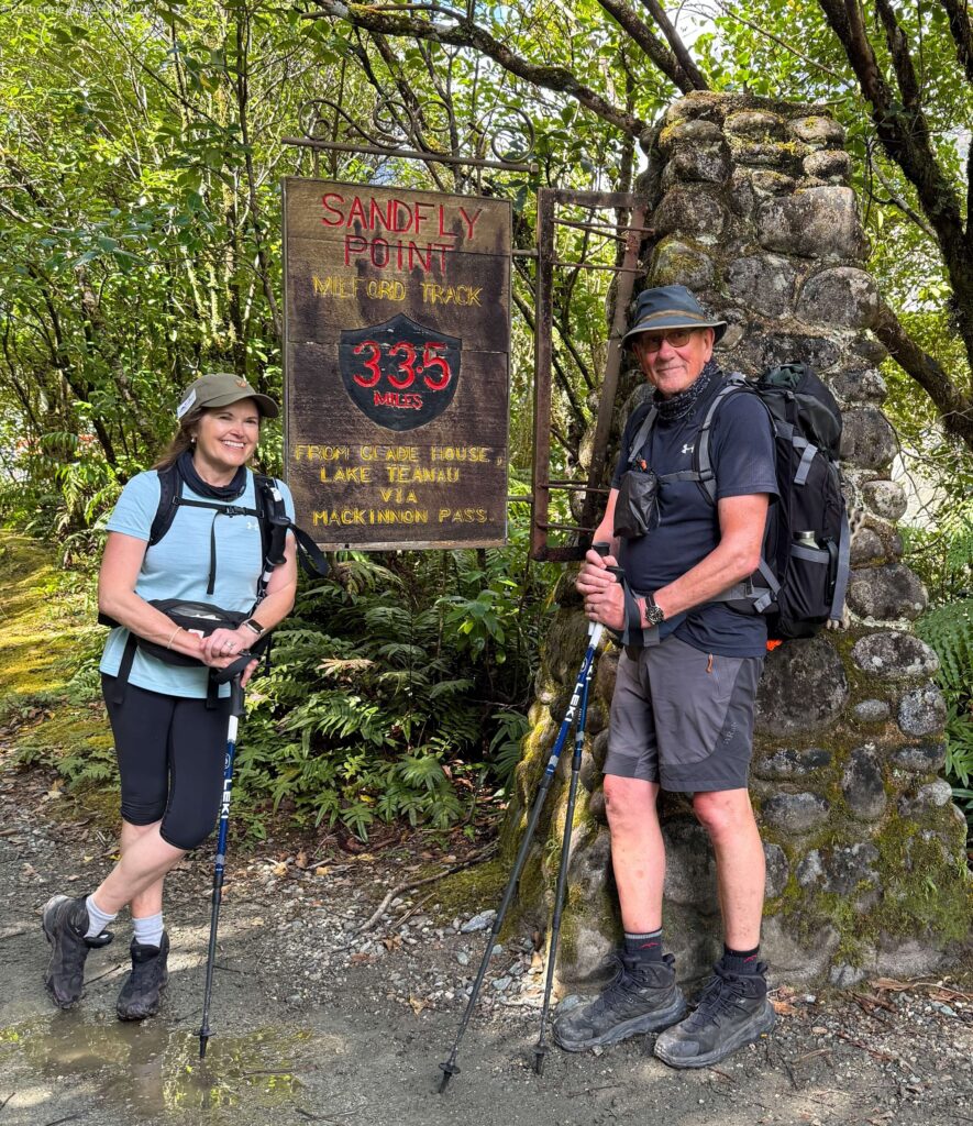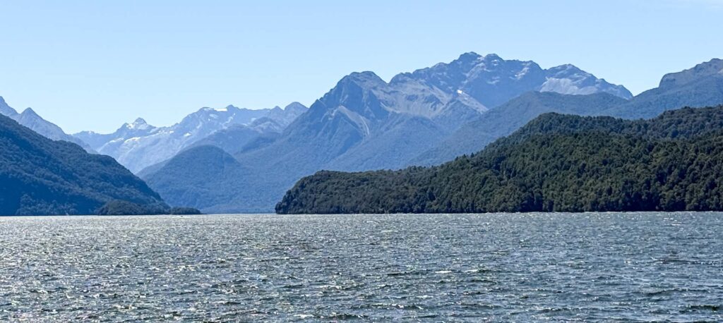 We were pleased to reach the aptly named ‘Sandfly Point’ (little biting flies which are always hungry and hunt in packs!) mid afternoon on our fourth day, and join a bunch of our fellow walkers on the boat trip across Deepwater Basin to our final night’s accomodation at Milford Sound.