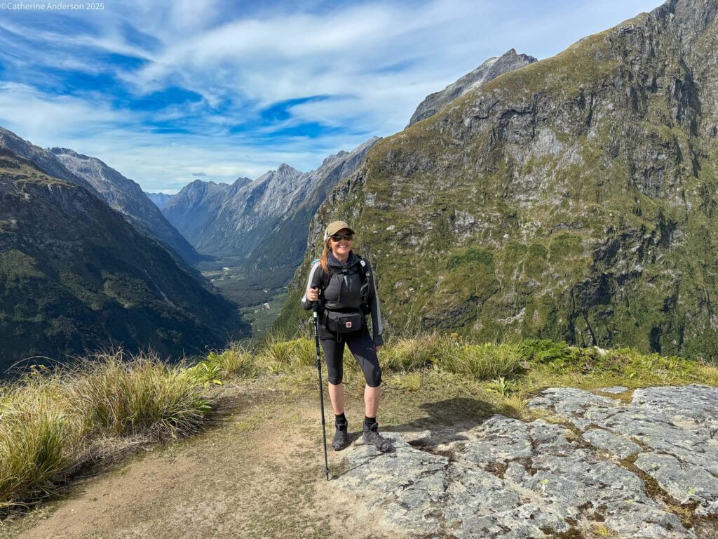 The weather for us was dry, unusual for the Milford Track, it can often rain in torrents for the whole walk. It was 30 degrees centigrade in the sun on our big ascent and descent, and that was as hard as rain. So you have to be willing and prepared to walk in all conditions, including snow, and winds so strong you can barely stand.