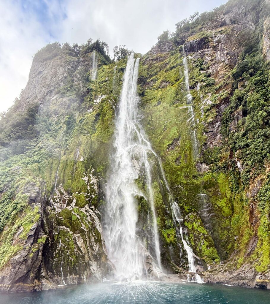 The view into Milford Sound is every changing – this as we headed off to join our post hike boat cruise on the sound before our coach took us back to QueenstownStirling Falls plunges into Milford Sound. It is said you will become ten years younger if you are touched by its waters…not entirely sure that worked, despite everyone on board our boat being covered in spray!New Zealand Fur Seal and Tawaki/Fiordland Crested Penguins seen from our day 5 cruise