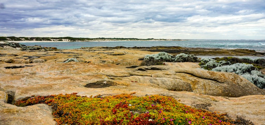 After an hour’s drive we decided to head down to a little bay (Munginlup beach) on the coast for some lunch. Arriving, we saw a well laid out campsite, new toilets, and noone else. So…we thought let’s stay here the night. Tas was keen to explore so a walk to the ocean was in order.