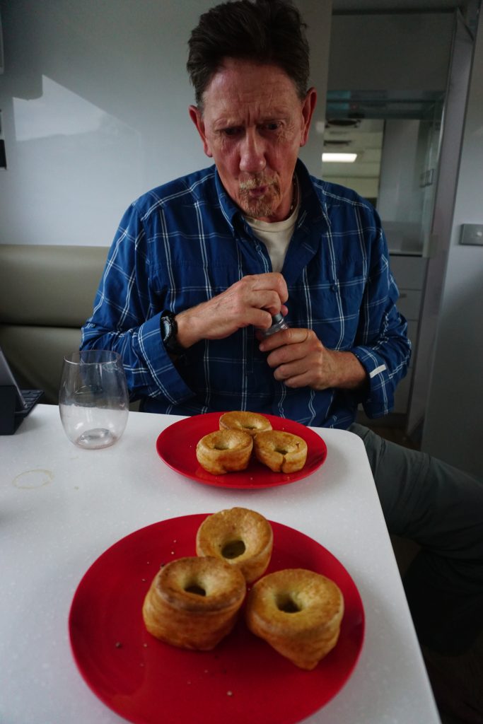 Heading back to the caravan we decided to use up some pancake batter and try making Yorkshire puds in our oven. Worked out very tasty – washed down with a Chardy from Mt Barker’s Plantagenet winery. Main is a chicken Pad Thai, absolutely yummy, so we decided it needed something special to show it off. I fished out the Brash Vineyard 2014 Shiraz. More medals than Usain Bolt’s mantelpiece.