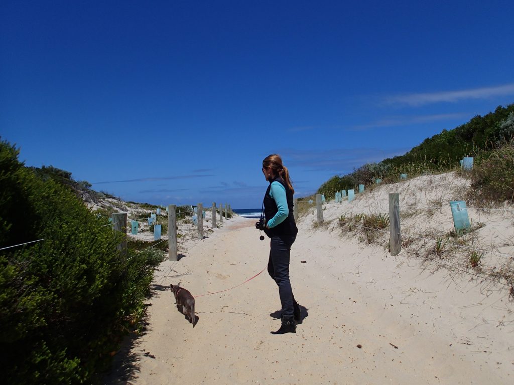 Tas wasn’t too keen on the sight and sound of the ocean, but loved digging in these dunes