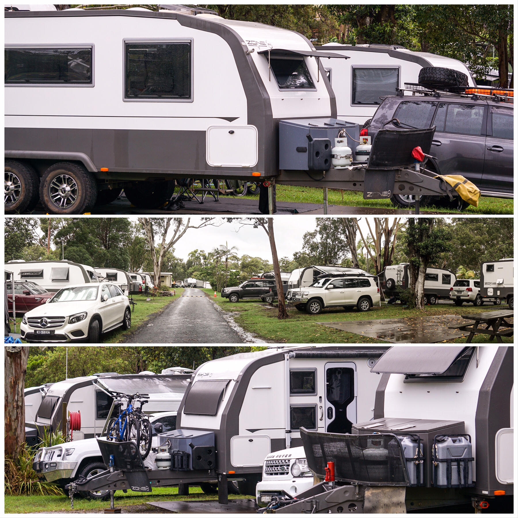 The sound of thousands of ball bearings being thrown on the roof of our mobile apartment was what greeted us this morning, with heavy rain showers blowing in from the ocean. Adventurous plans of going hiking in the rainforest were abandoned in favour of cake baking and morning tea with our fellow Zoners, also dodging the inclement weather. As the morning wore on, more Zone RVs arrived taking us up to 11 vans, making the caravan park look like a muddy rainforest version of a Zone showroom, should such a thing exist!