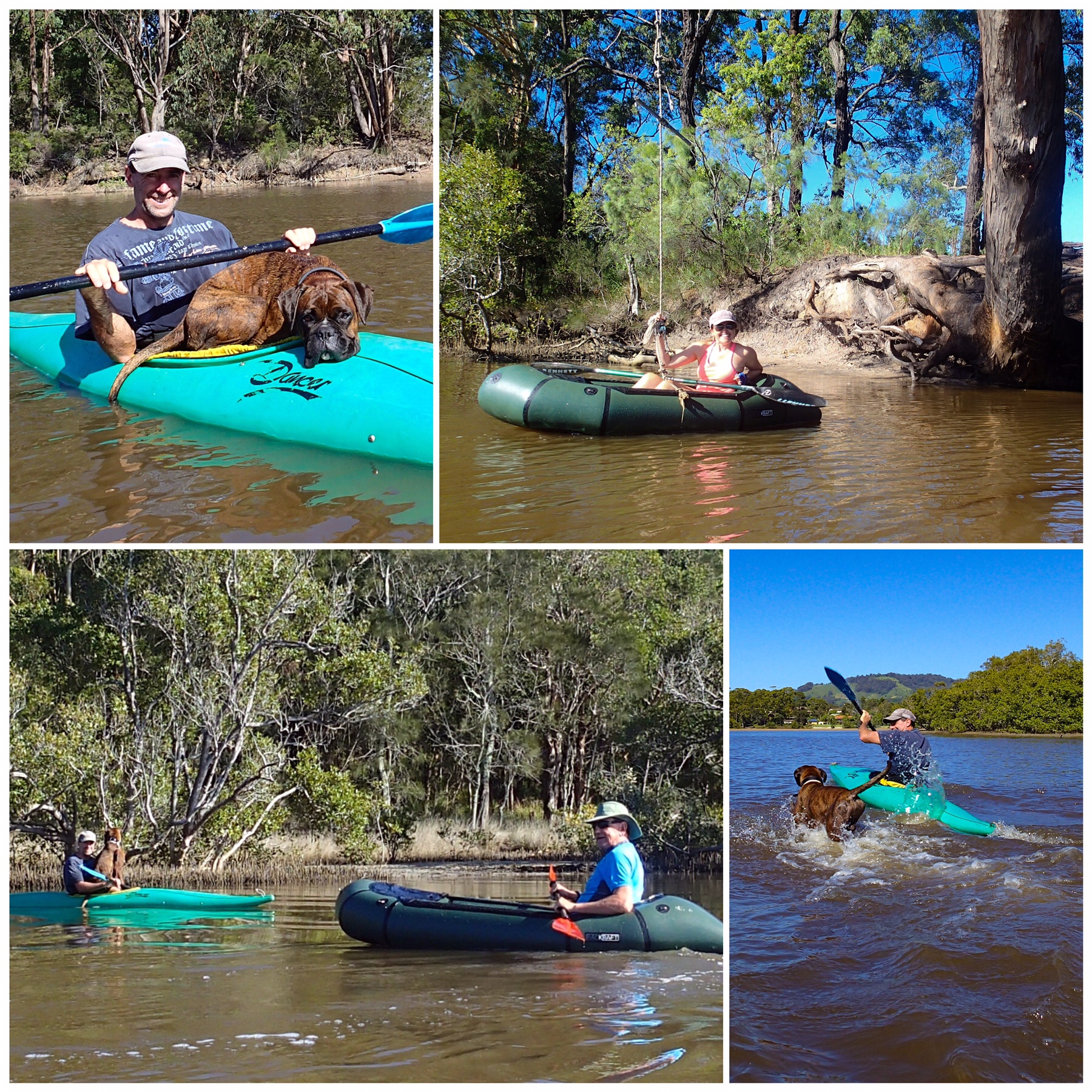 Moonee Creek was our destination this morning, just a few metres down a wooded slope from our caravan. Having left our beautiful fibreglass kayak back in Sydney, we inflated our pack rafts, sacrificing speed for the benefit of not having a 7.3 metre boat on the roof of the car. We were joined by fellow Zoner, Darryl and his boxer Dusty for a paddle.