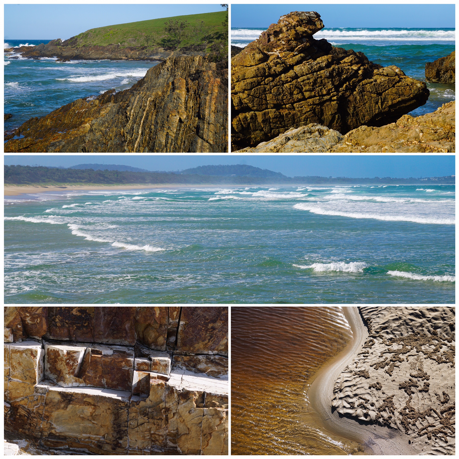 From the rocks at the mouth of the estuary you can see right up the coast along Moonee Reserve, the salt spray making the air look misty and atmospheric.
