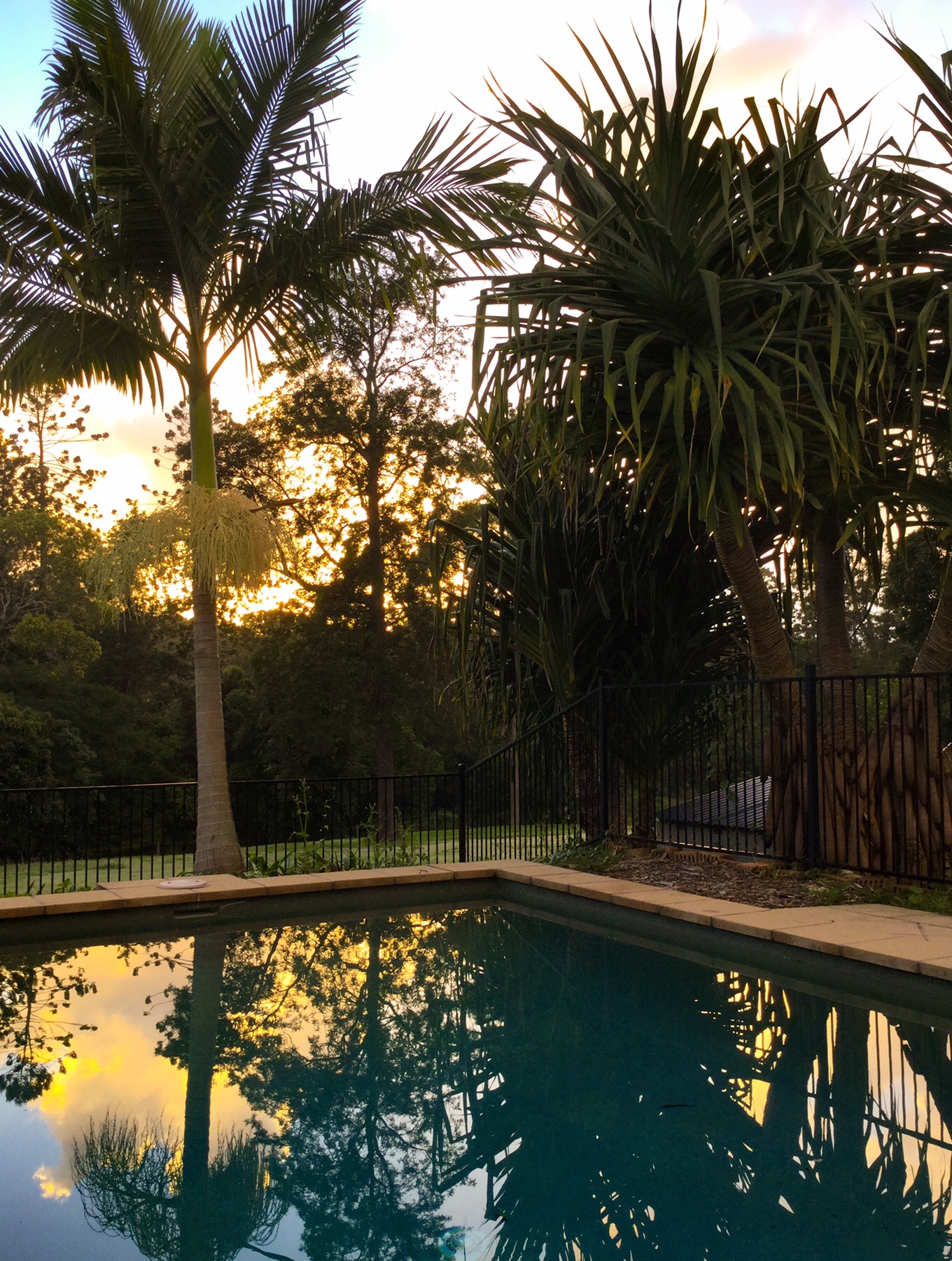 We drove west out of the city, heading towards the Glasshouse mountains, the setting sun together with April showers providing us with a spectacular evening sky show as we travelled.