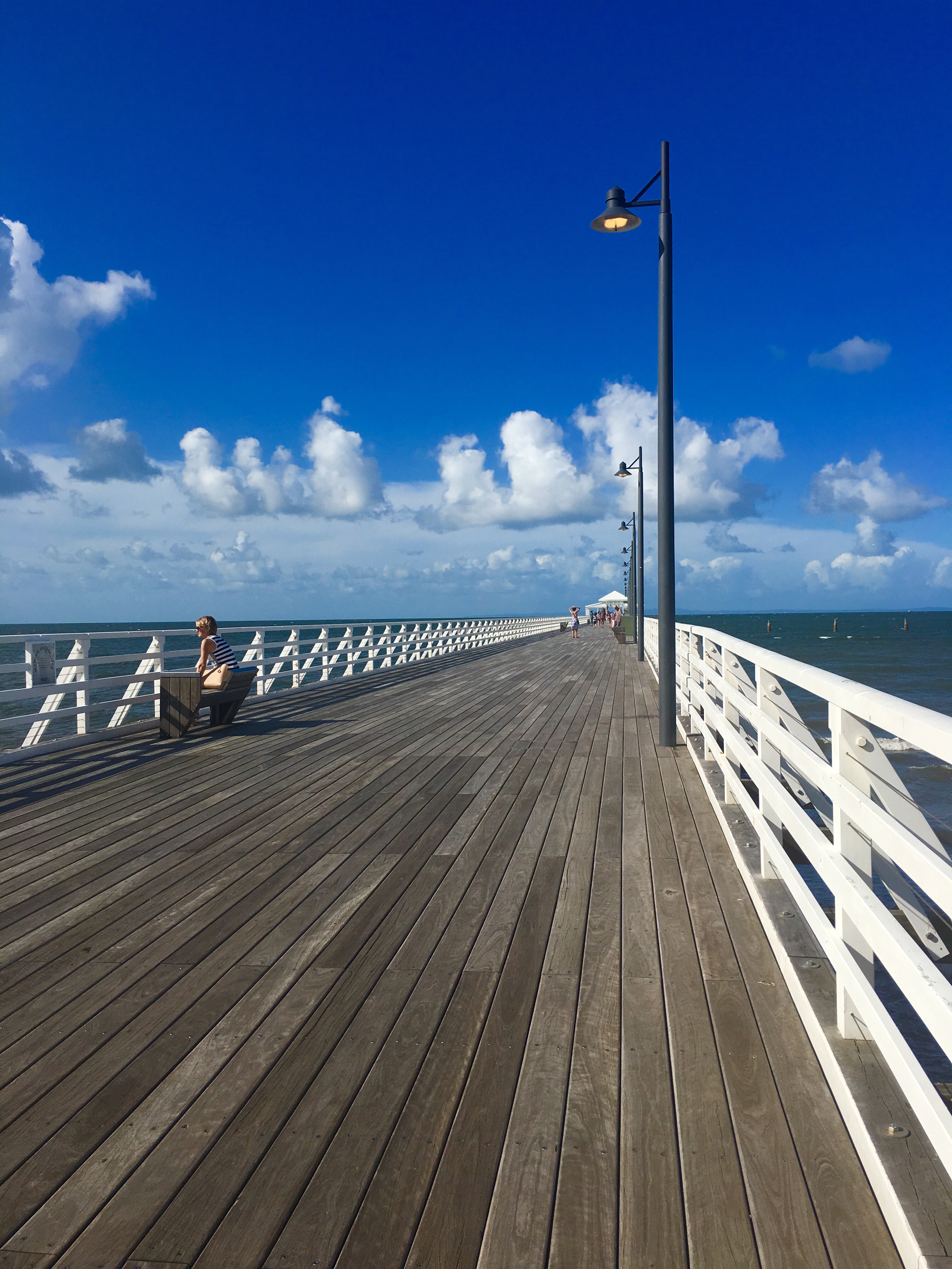 From there we decided to escape the oppressive city and head to the coast…and breathe…yes, much nicer. First of all to Shorncliffe Pier where Tassie was dive bombed by noisy miner birds and magpies….