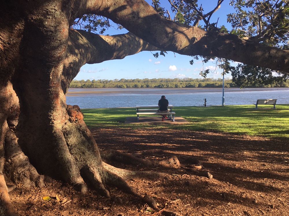 We had a few tasks to do, so drove first to a huge shopping centre in the suburb of Chermside. We found a quiet parking spot in the shade so Tassie would be safe in the car, and went on in. Fortunately it was a cool (just 21 degrees!) and rainy morning, so we didn’t need to worry too much.
