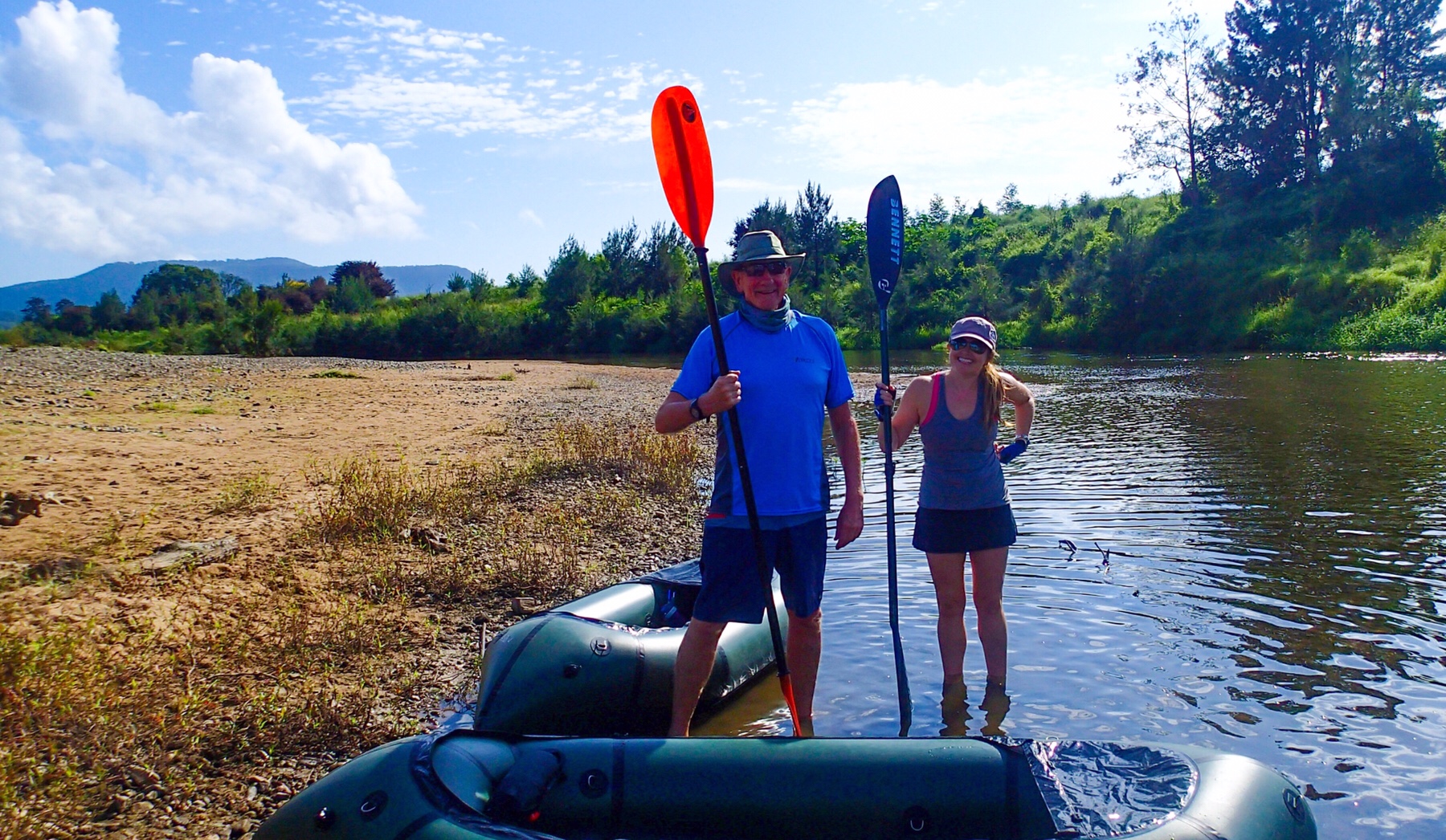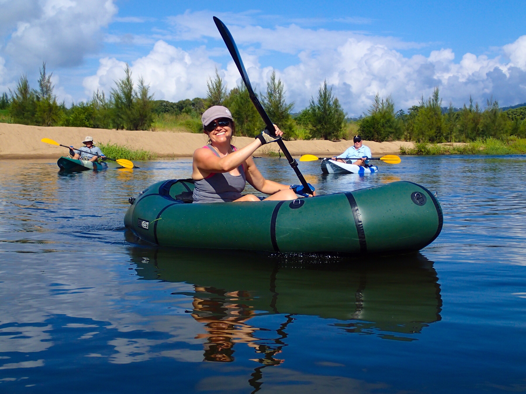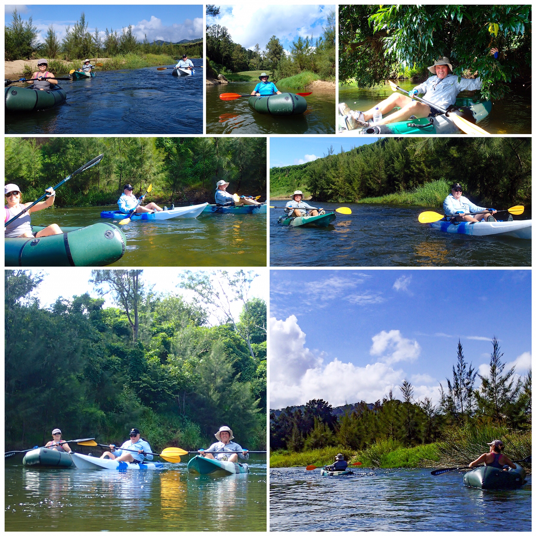 Friday morning dawned bright and sunny, so Mr A, Phil, Greg and I drove up into Kenilworth to find somewhere upstream to drop our kayaks and Packrafts in. After a little hunting around plus Googling someone else’s kayaking blog we found a park beside the show ground with water access and off we went.