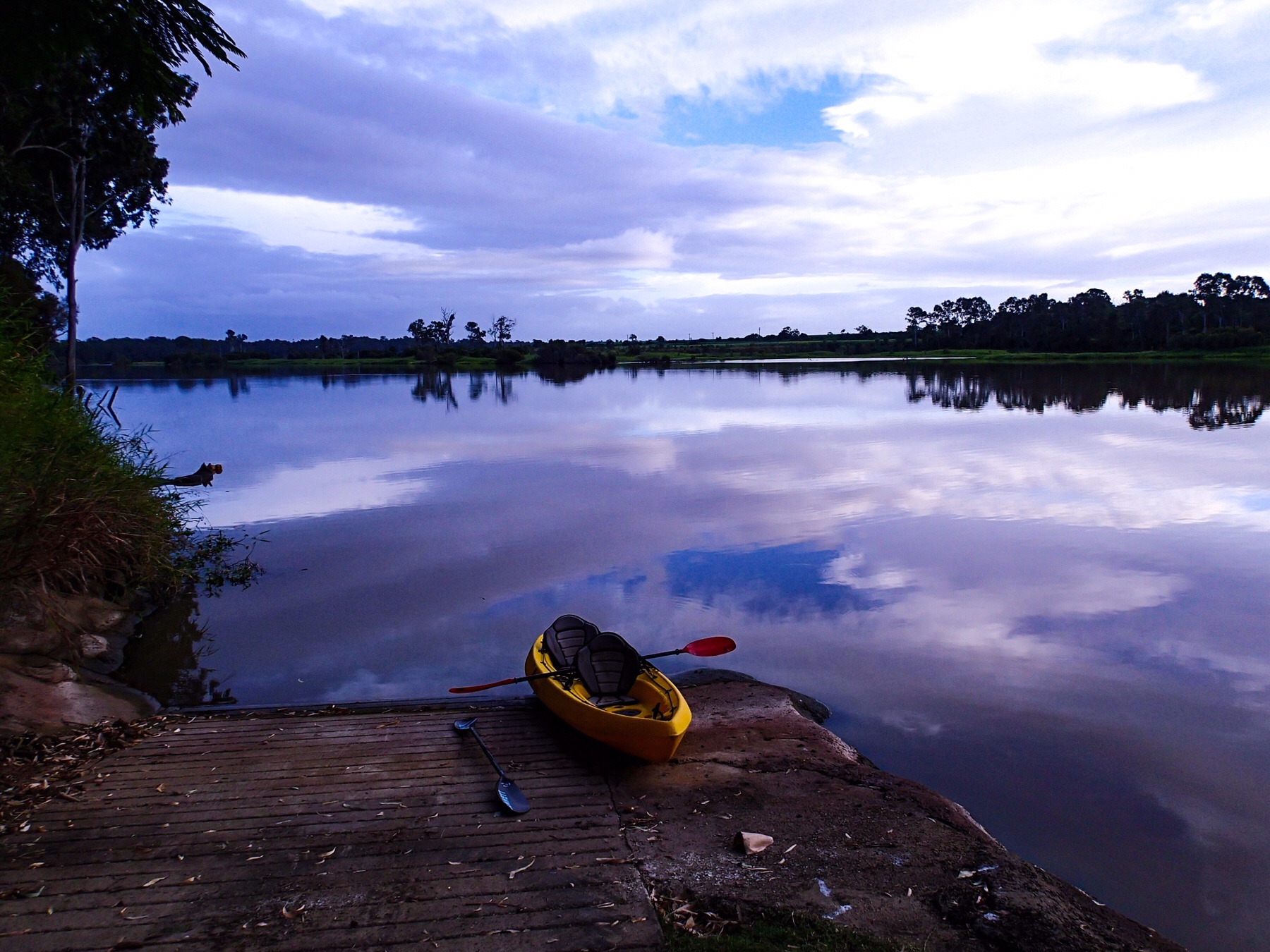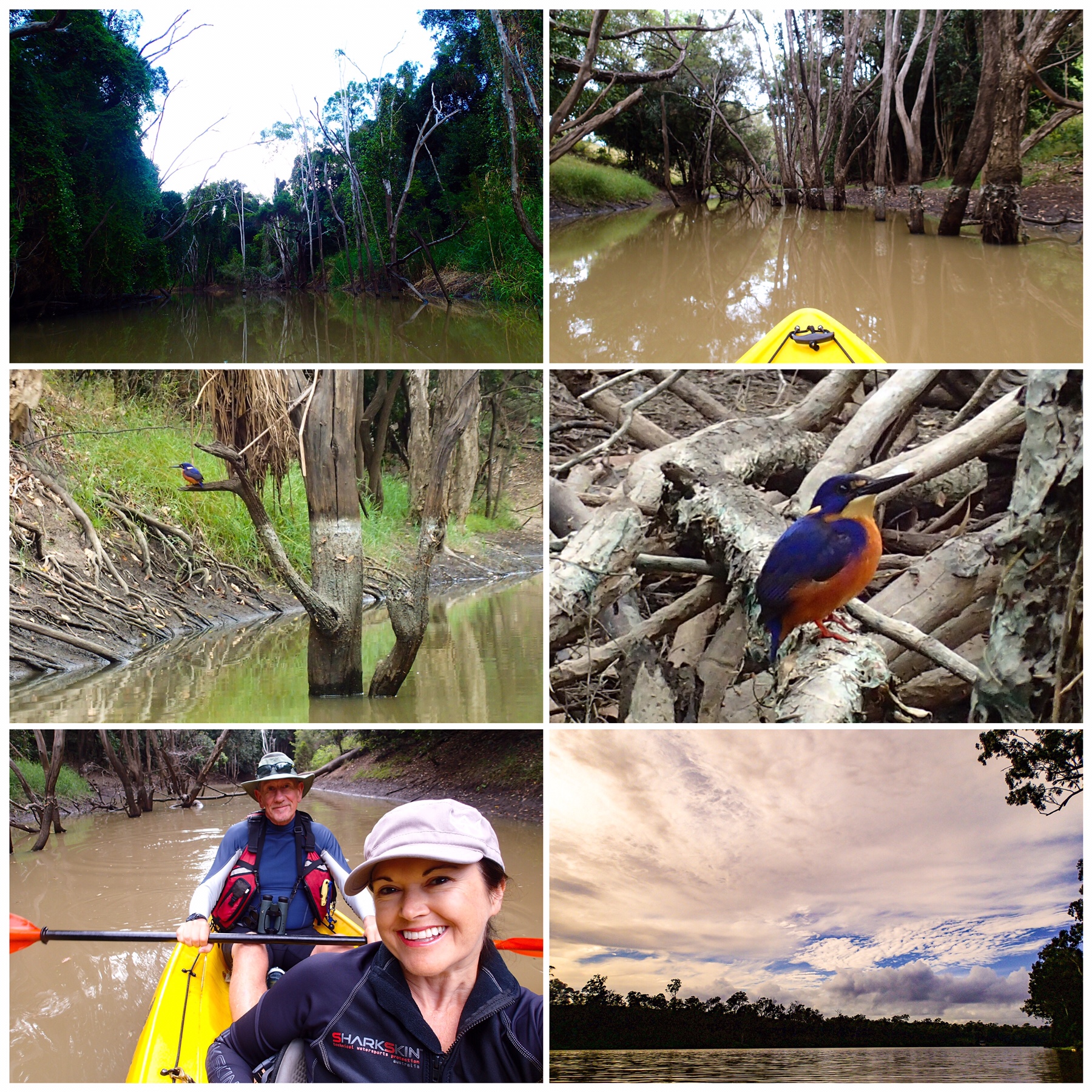 We were up as the dawn broke to head off in a double kayak that is put at the disposal of campers – no extra charge. We pushed off into the Burnett river and headed down a small tributary where Colin said we might see platypus.