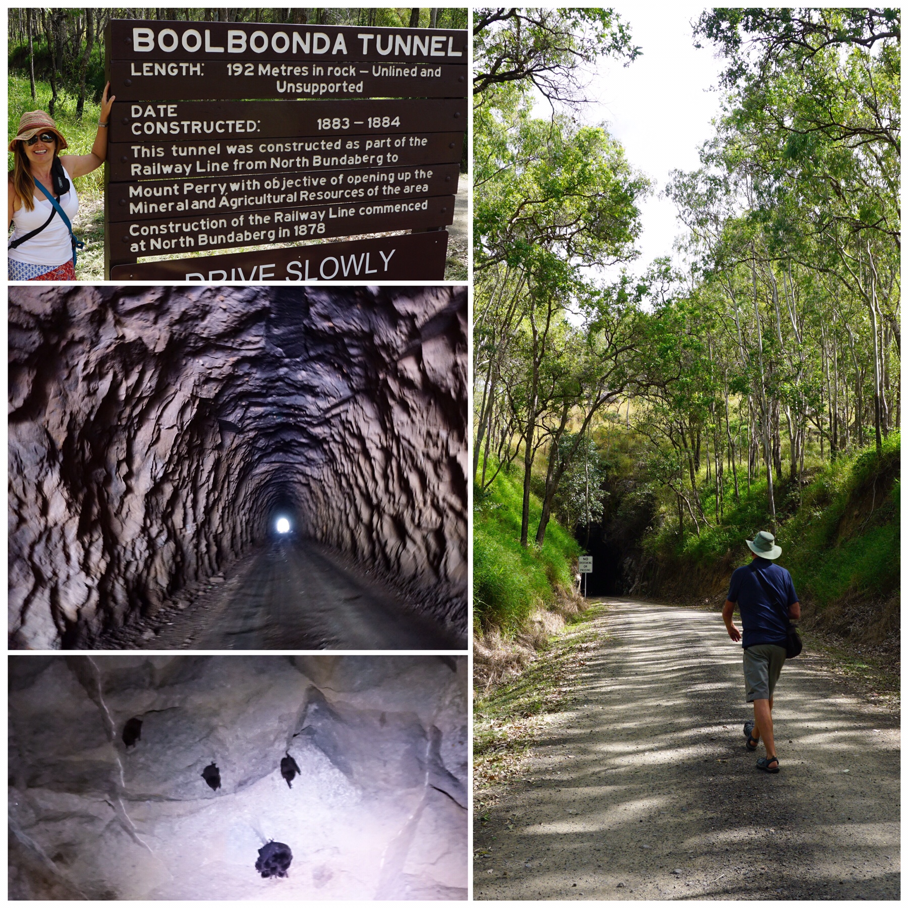 We diverted off the highway to check out Boolboonda Tunnell, all 192 metres of it – and its claim to fame twofold. Its the longest unsupported tunnel in Australia, and its home to a massive bat colony. Wandering through it was pretty smelly, and those bats were going crazy flying around our heads.