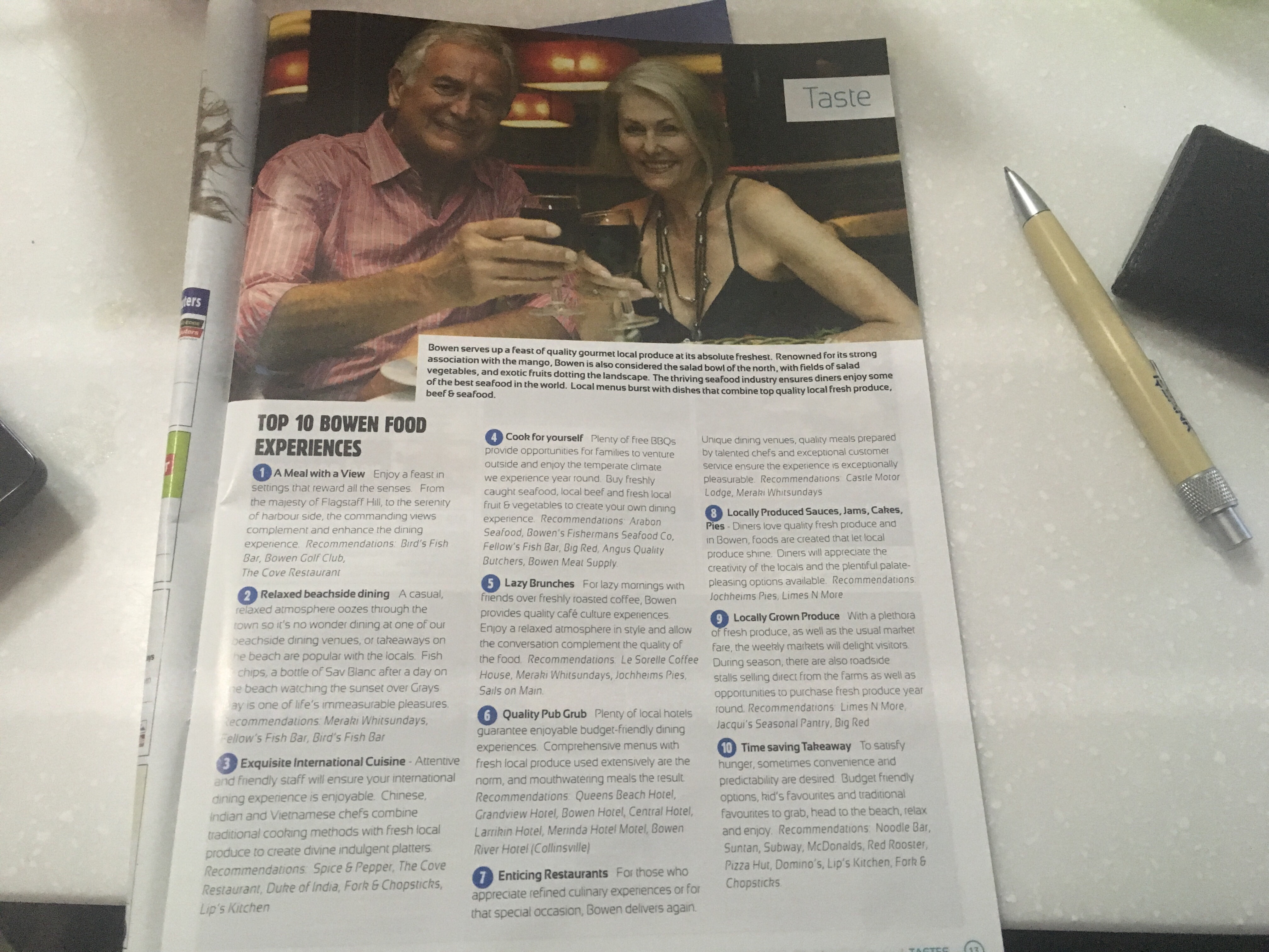 ‘Bowen serves up a feast of quality gourmet produce…offering exquisite international cuisine” (the Chinese and Indian apparently). “With a plethora of local produce’.