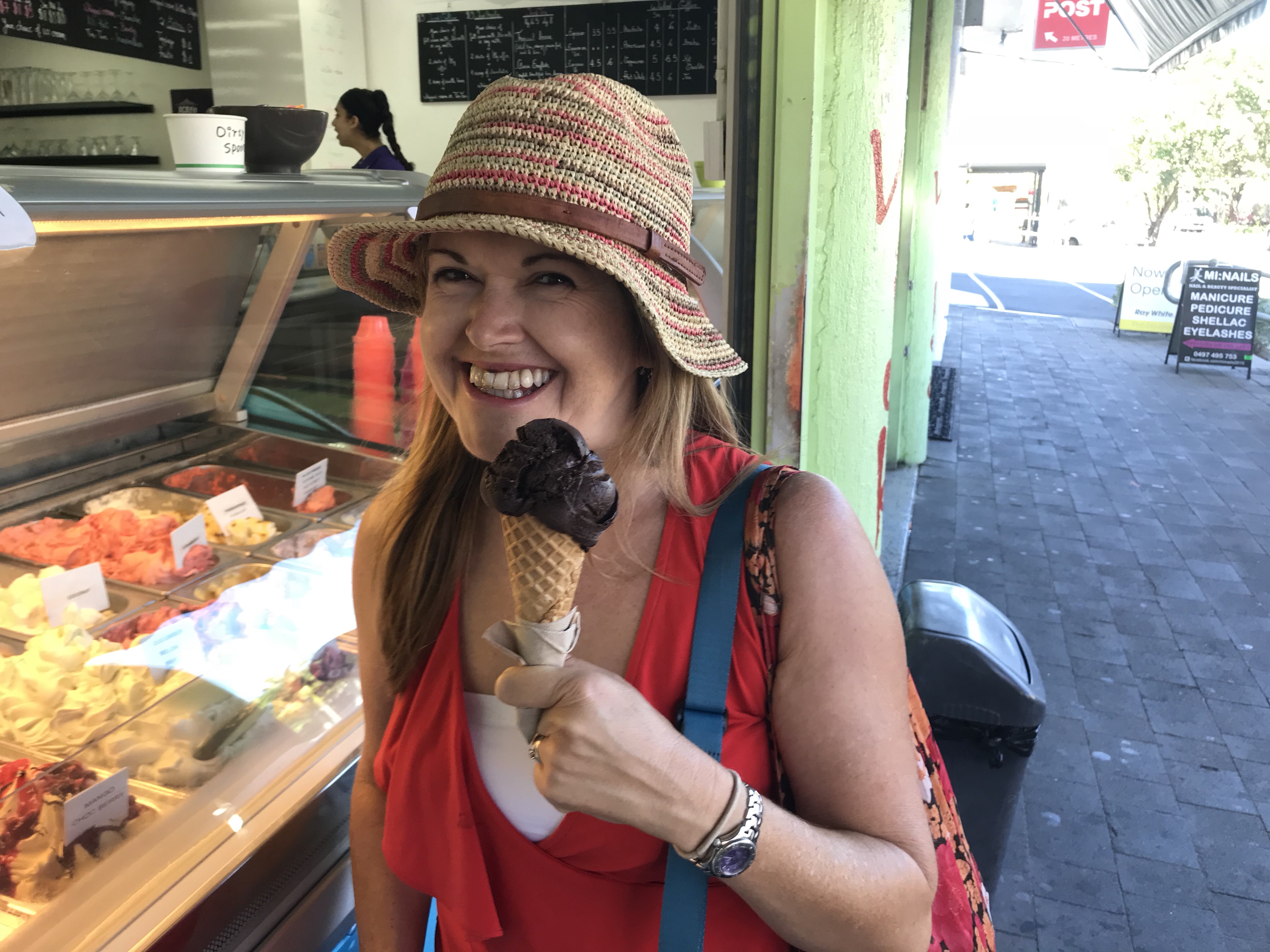 Mrs A picked up a few more things, then indulged in a chocolate sorbet – yes that is just chocolate, not rotten teeth!