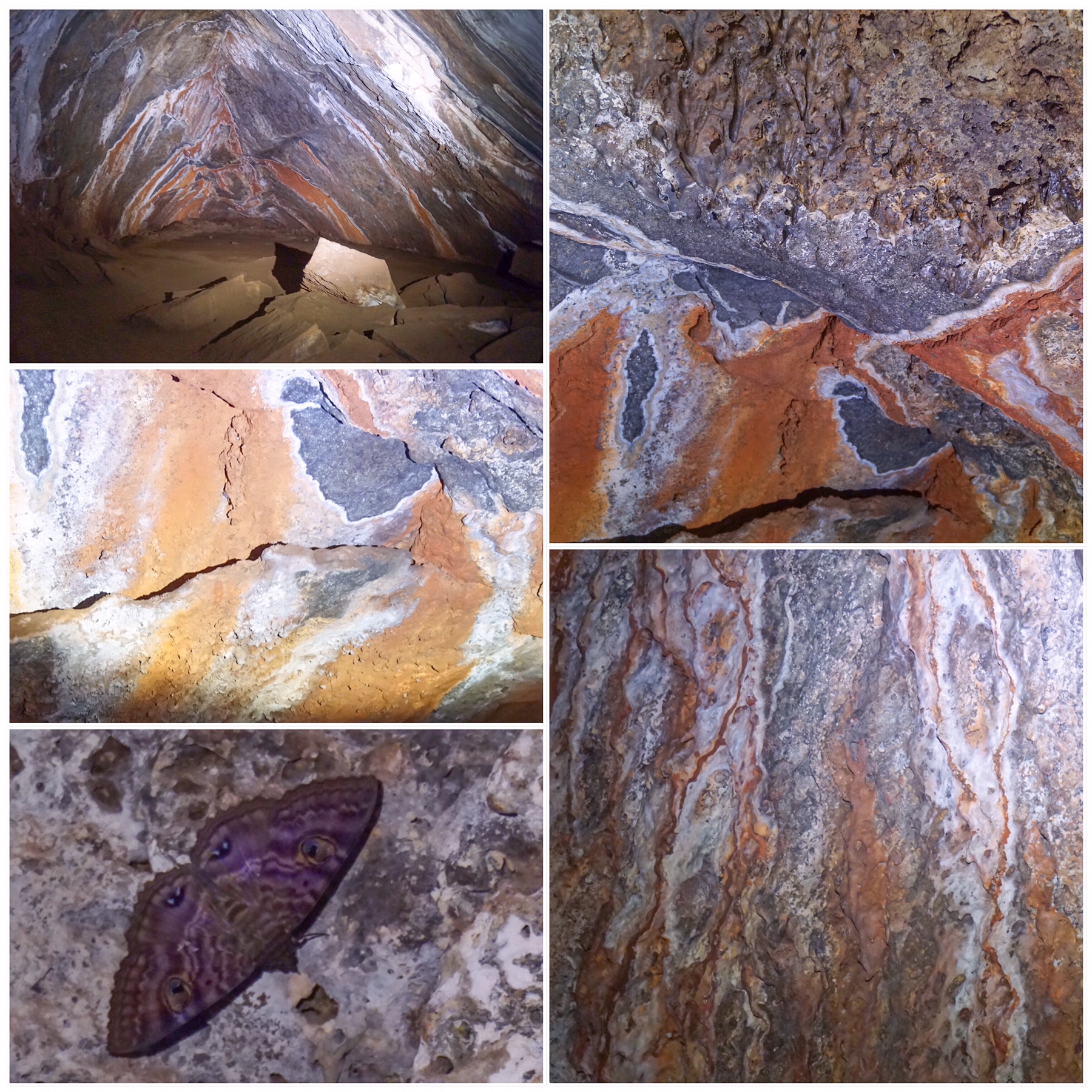 Fortunately for us, today was not that day, and we lived to explore another tunnel, this one around 1.3km in length, winding its way along an old watercourse. Bats, moths, cockroaches and cane toads are among the known (and seen) residents of these tunnels, and the colours are fabulous.