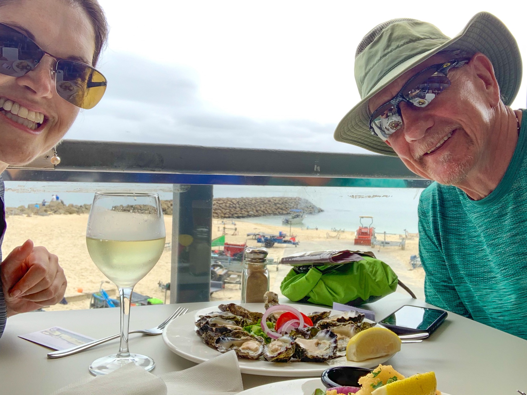 We continued our walk a little around the bay, driving around to Little Bay where we took to the beach and followed the soft sand around to Yarra Bay. We had never heard of Yarra Bay, but found out it is a nominee for the best beach in Australia. We called into the Skiff Club for lunch.Oysters and calamari sustaining us, we then decided to inflate our peak rafts (handily stowed in our backpacks) and paddle back to the start of the walk. Perfect!Our day concluded with a delicious barbecued roast lamb dinner with Jenny and David, simply delicious.