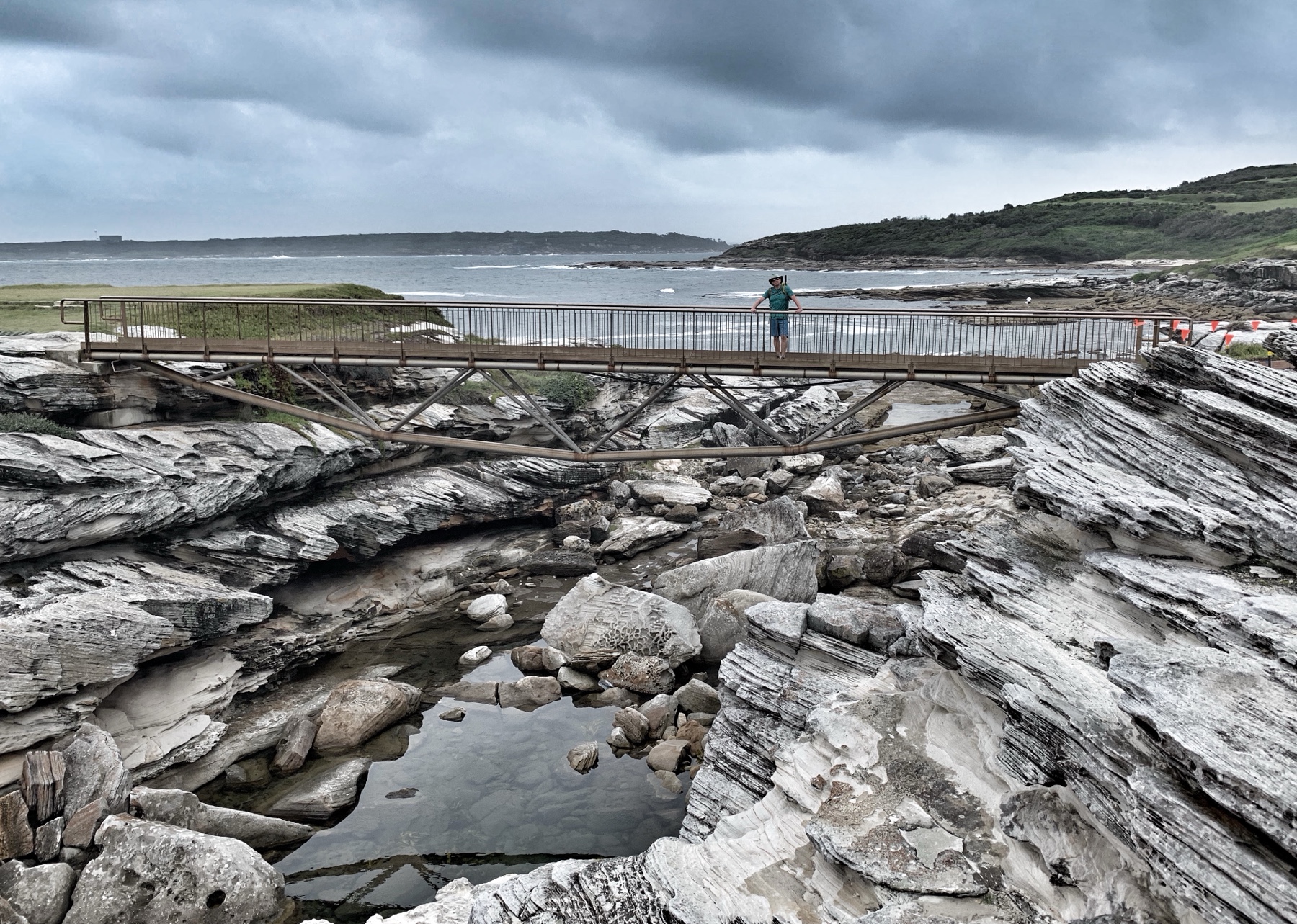 Mr A takes the bold step off mainland Australia onto the bridge to the island