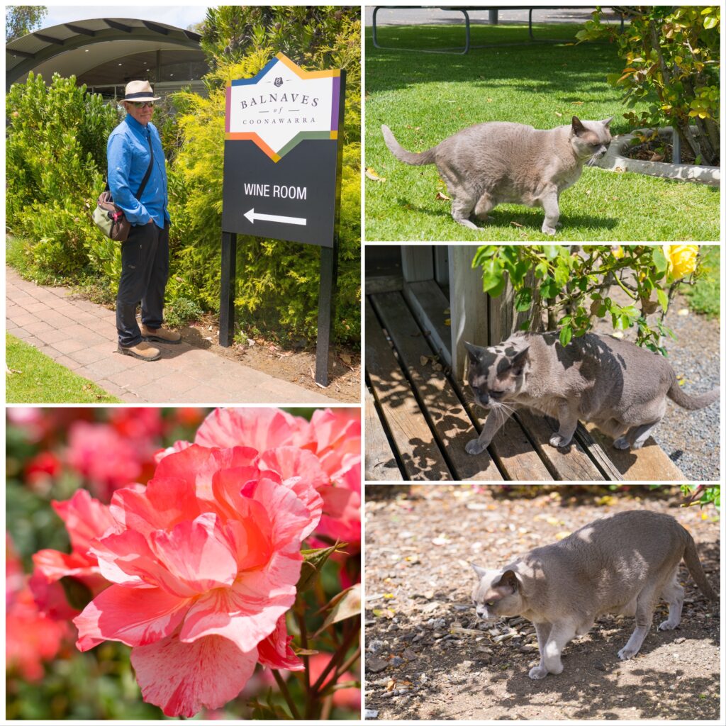 We cruised into the Coonawarra wine region with some excitement, it was the only wine region in Australia we are aware of that we haven’t visited. Fortified with a brunch stop just outside of the small town of Penola, we decided to have a look at Balnaves Winery as I had remembered drinking a number of their high end Cab Savs. Checking first they had enough space for us to bring the caravan in, we found ourselves parked up next to a fabulous rose garden, that of course our little Burmese princess had to explore.