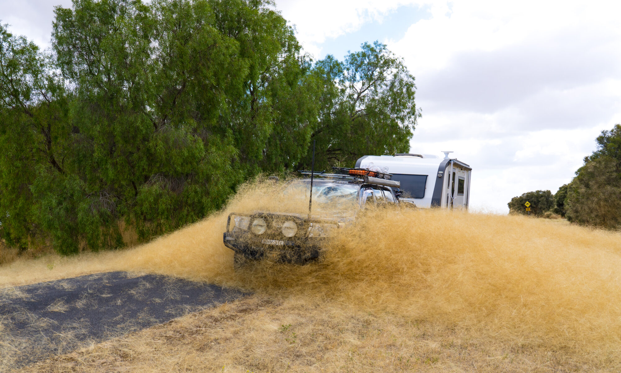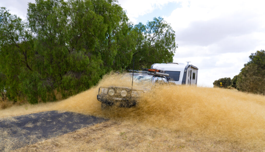 We were going to do some more tastings the next day but had lost the motivation, so headed out to a wetlands (currently dry) nature reserve way out in the sticks – Bool Lagoon. Check out this wall of “tumbleweed” being blown up in the strong winds.