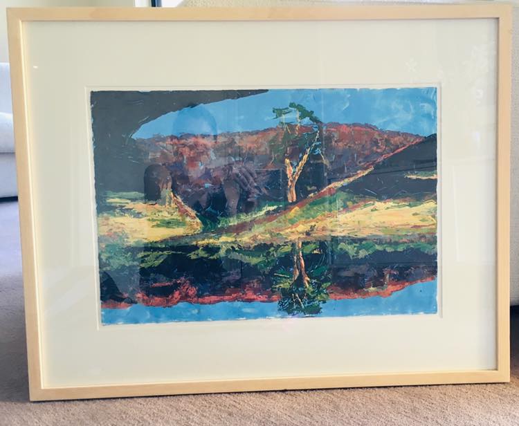 Unframed pieces are easy to post anywhere in the world, pieces on canvas a little more challenging but still can do, but framed works really would need to be collected or couriered locally. Prices are in Australian dollars.