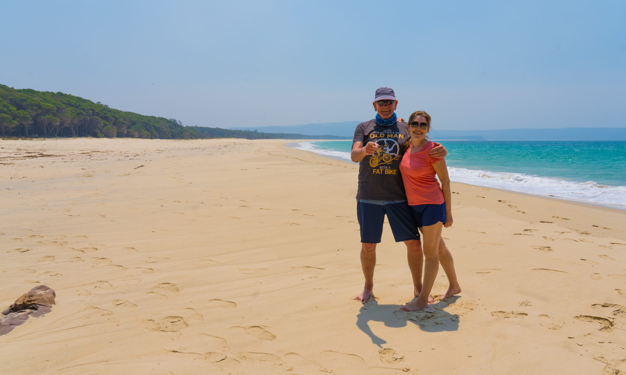 Friday morning we awoke to what is sadly becoming a familiar scene, our surroundings bathed in bushfire smoke. We quickly looked on Google to check it wasn’t close by, and found there were a couple of reported ‘under control’ fires by the highway, about 9km inland from where we were. A northerly breeze picked up and the smoke started to clear somewhat, so we decided to chance it and go for another cycle.