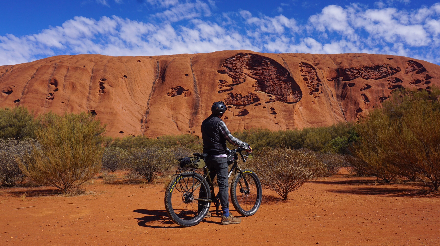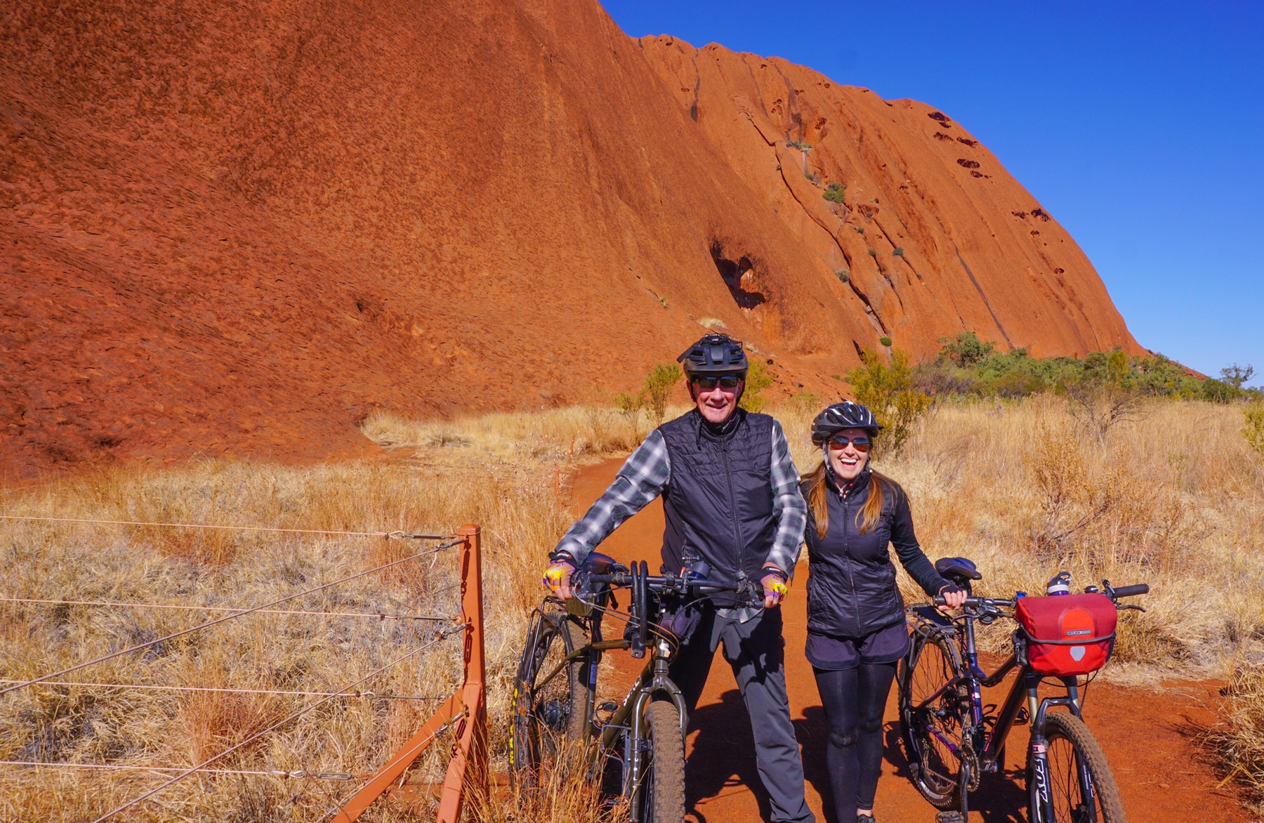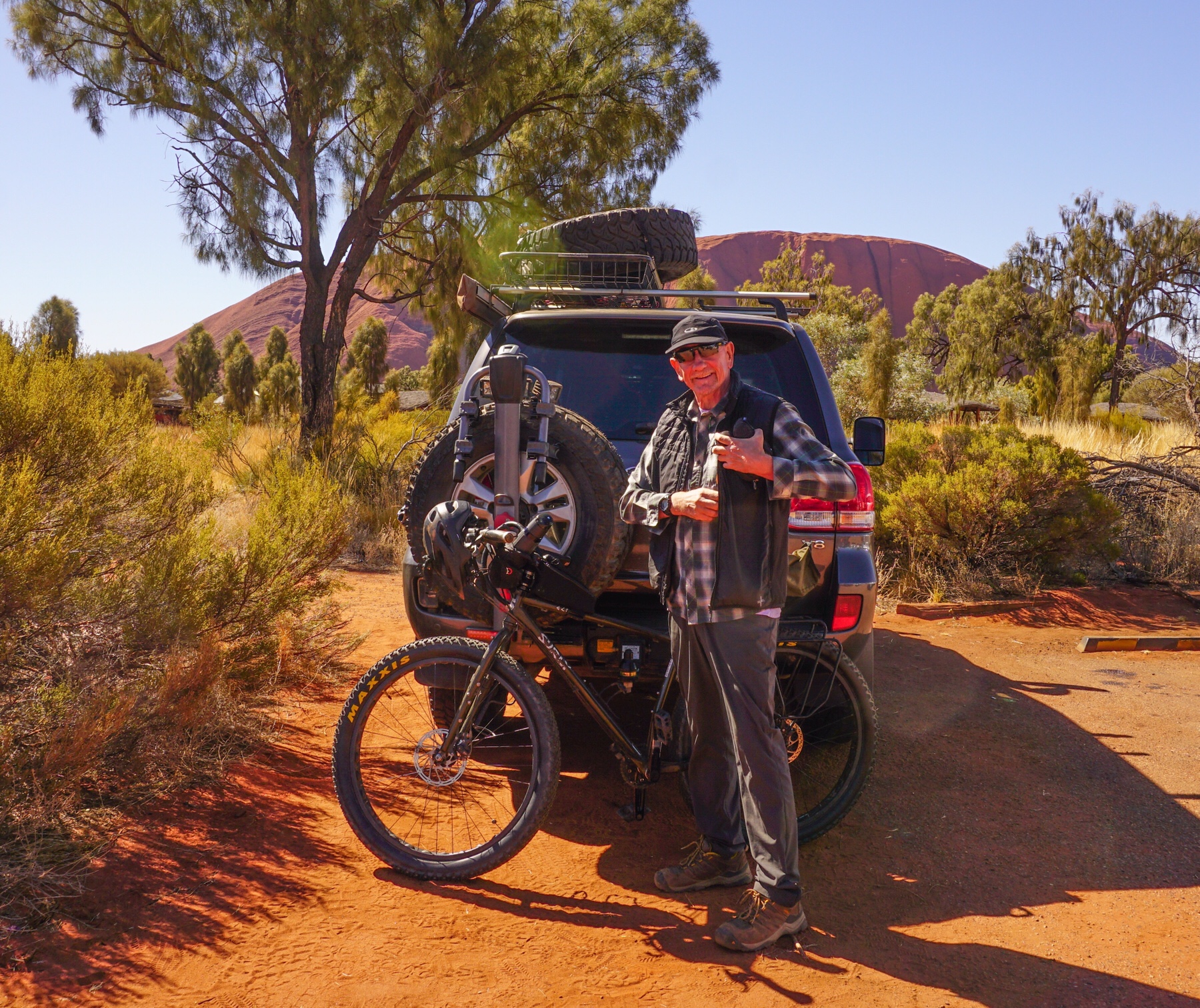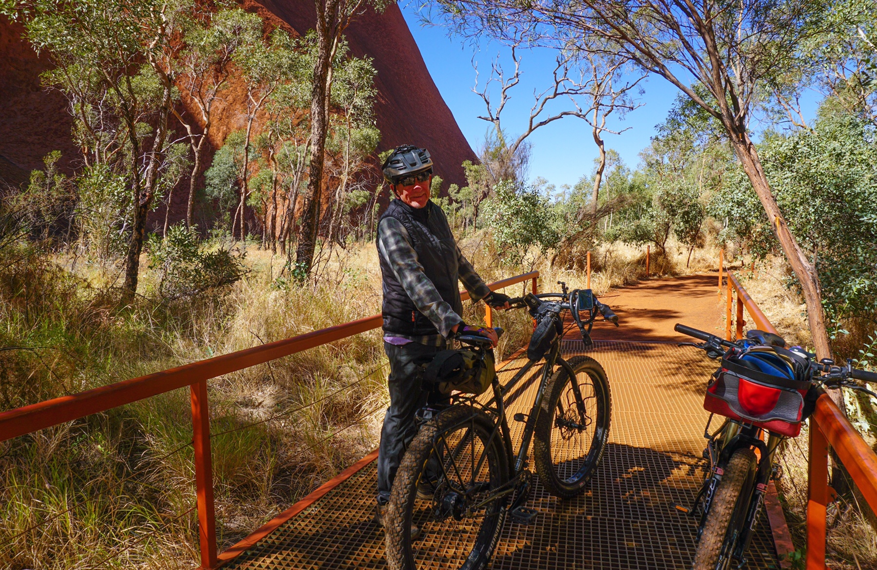 We joined the pain path around the rock and checked the signage, it only showed walkers, but there were bike hire companies around and plenty of tyre marks, so off we went.