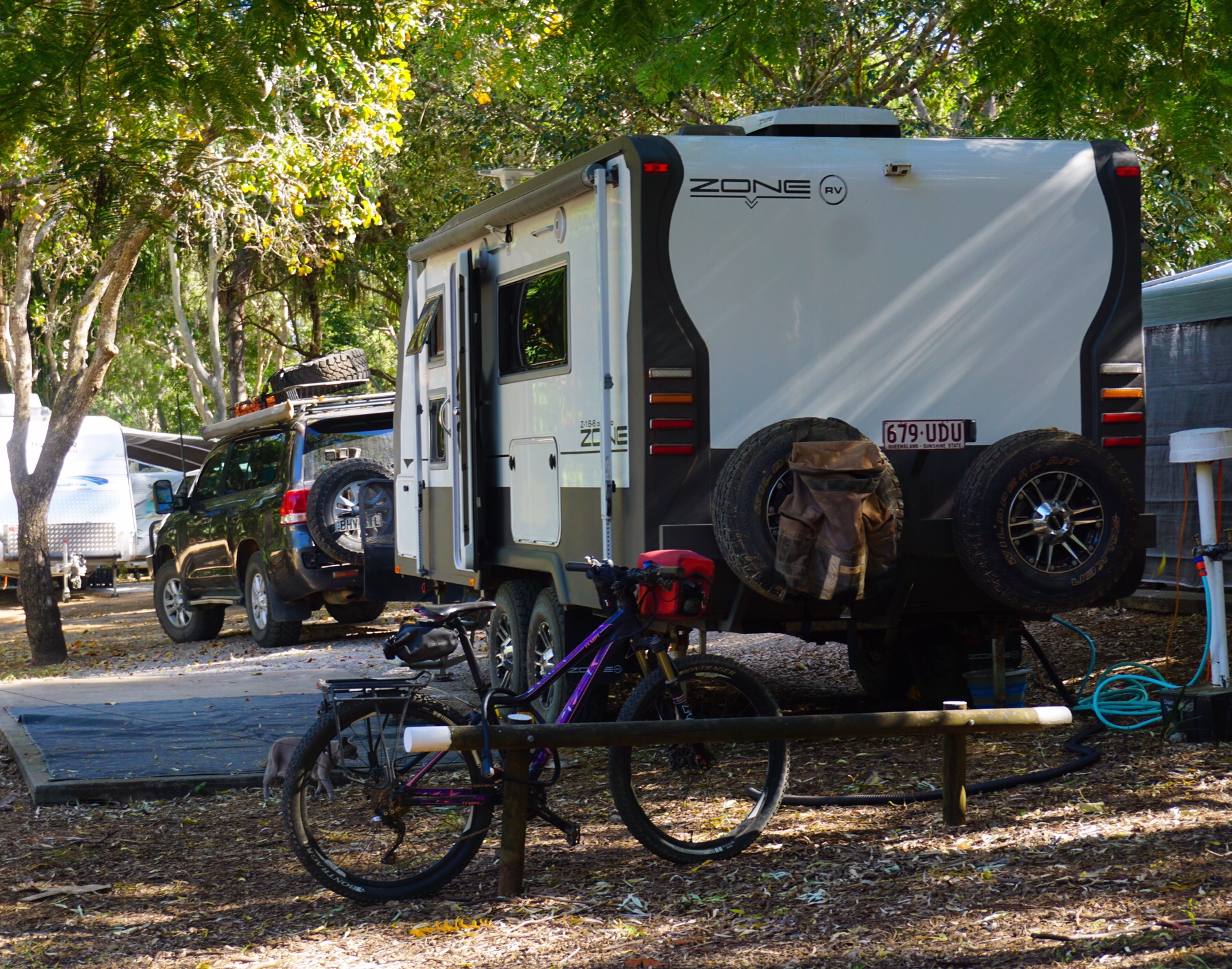 I nipped back to camp on my bike, and returned with the car. Mrs A was soon loaded up with her bike and returned to camp, where we spent the next 3 hours picking bindi spikes out of both of our tyres! I’ve never ridden in this type of country before, so was pretty shocked how it has destroyed even my thick tyres. At least my tubeless set up kept me inflated, well until I started picking out the thorns! We are now going to have the petite (but usually very reliable) MTB that Catherine rides converted to a tubeless set up as well. Definitely worth it. So no more riding until we get to Darwin in a couple of weeks.