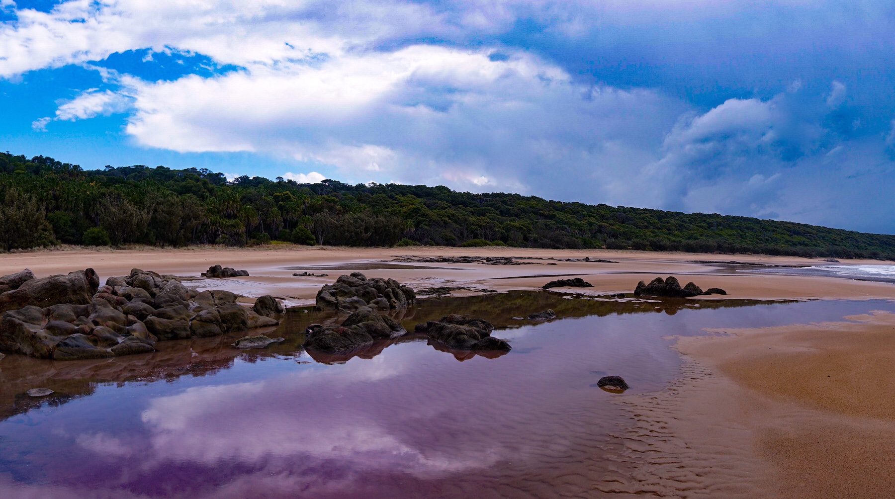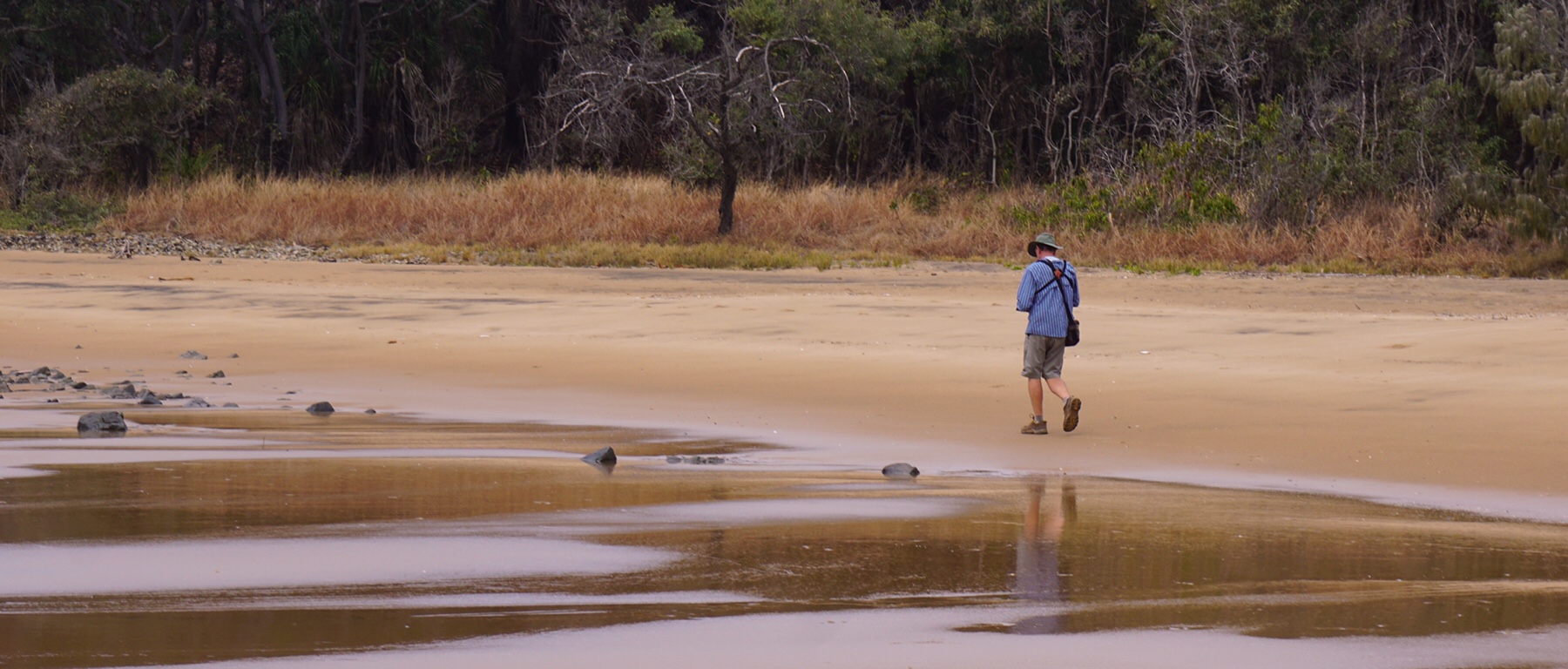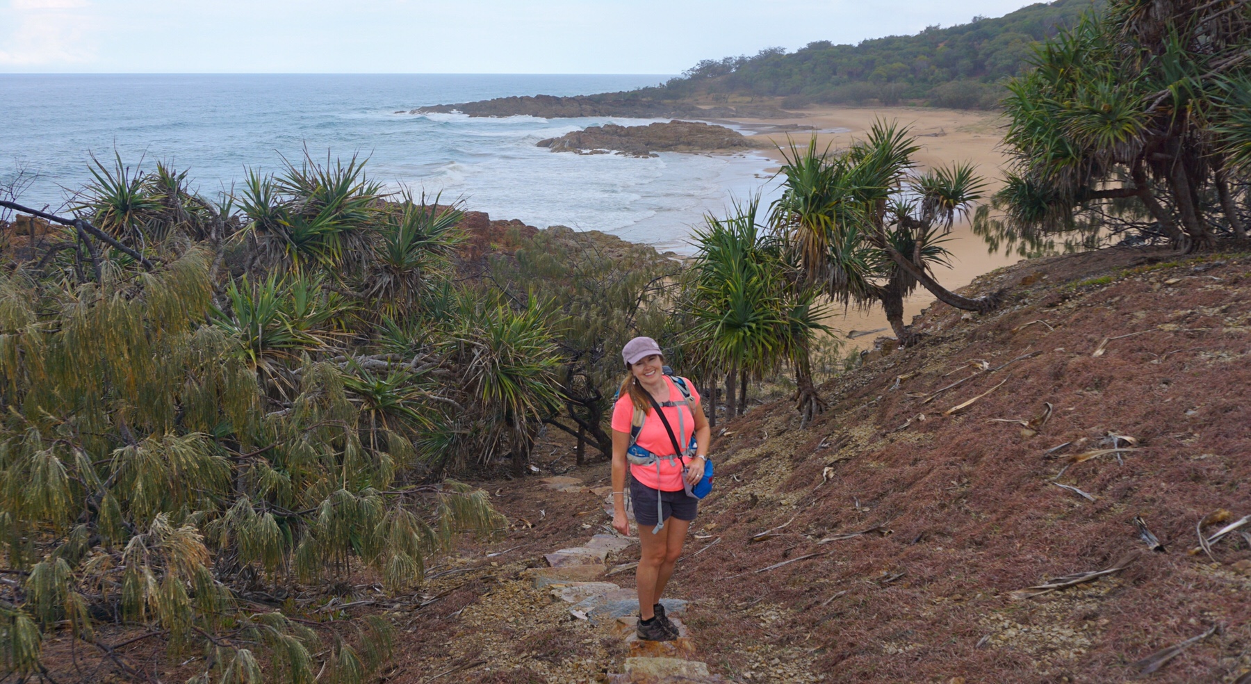 The pathway was well marked and predominantly white sand or grass, very easy walking with a couple of water crossings along the way. The landscape was quite open with good views to the east, across to the Great Sandy National Park.