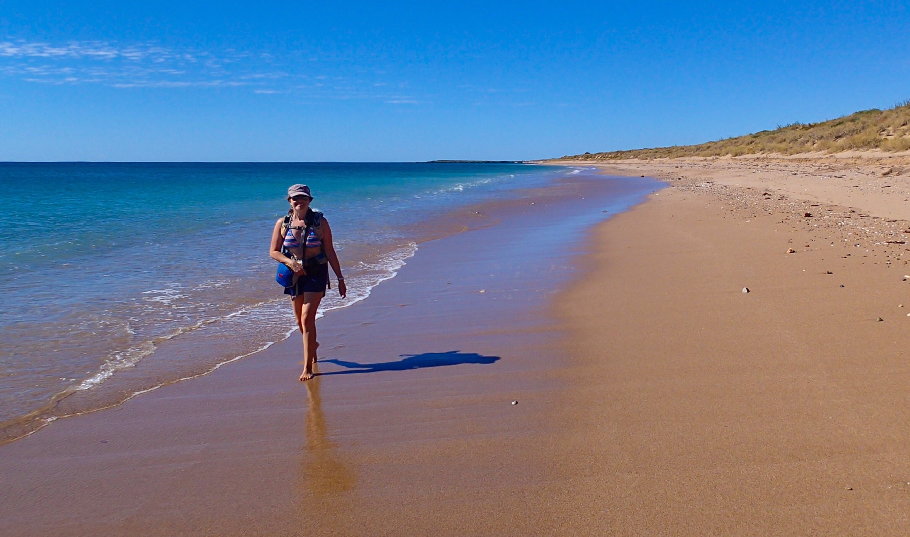 This is big, magnificent country with the sandstone escarpment of the Kennedy Range towering over our van. We had planned to go walking today if the weather fined up, and it had. So a foundational breakfast was called for. Using the fresh tomatoes, garlic, red onion and basil from the market gardens of Carnarvon we mixed up in the hand blender some bruschetta. I had spotted some packaged bread especially for bruschetta when we were in Woolworths. On inspection of the packaging it had actually been made in Italy, shipped to Brookvale (a kilometre away from our house in Sydney!) then onward to Caranarvon. Well travelled bread indeed. Tasted great though!