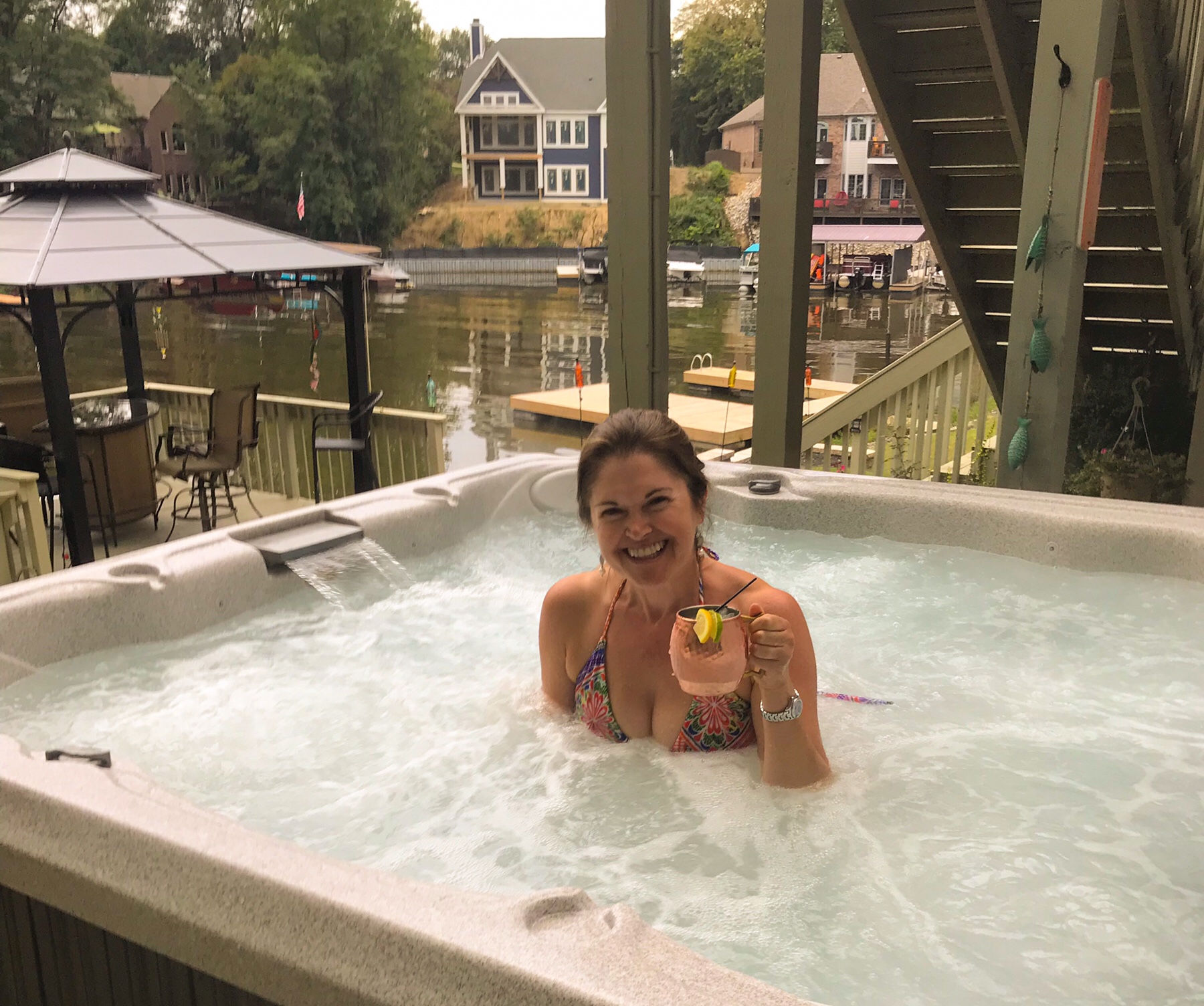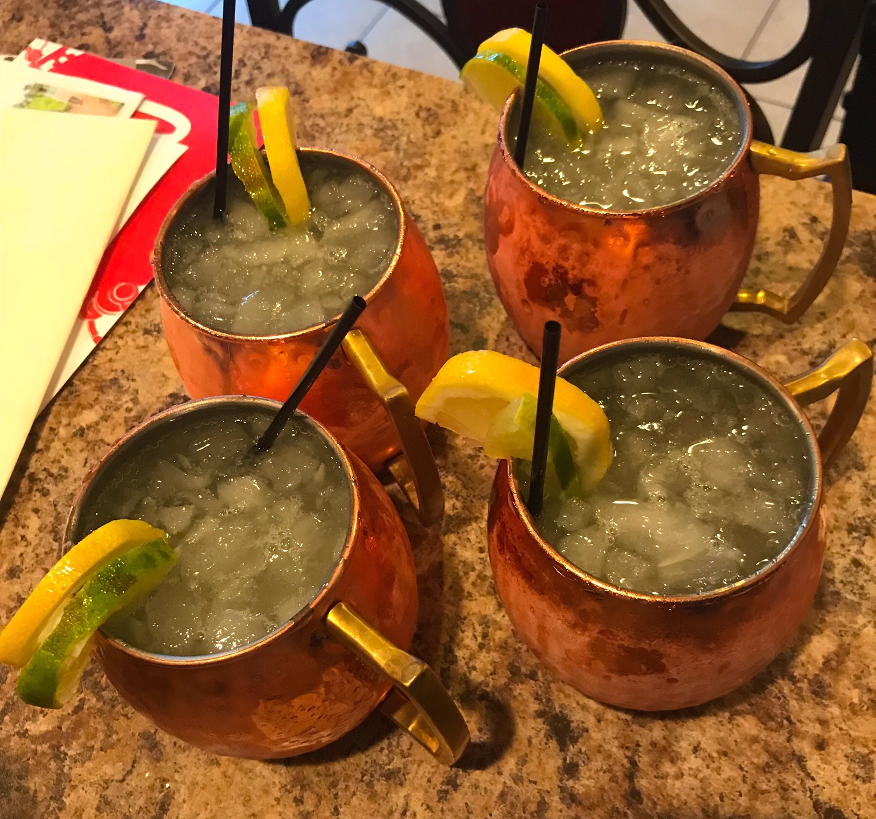 Eight kilometres under paddle later, we returned to warm up in the garden jacuzzi, with our second cocktail for the day. This time Carol whipped us up lemon, lime and ginger beer with vodka – A Moscow Mule – delicious and served in ice cold metal mugs which fit perfectly in the drink holders!