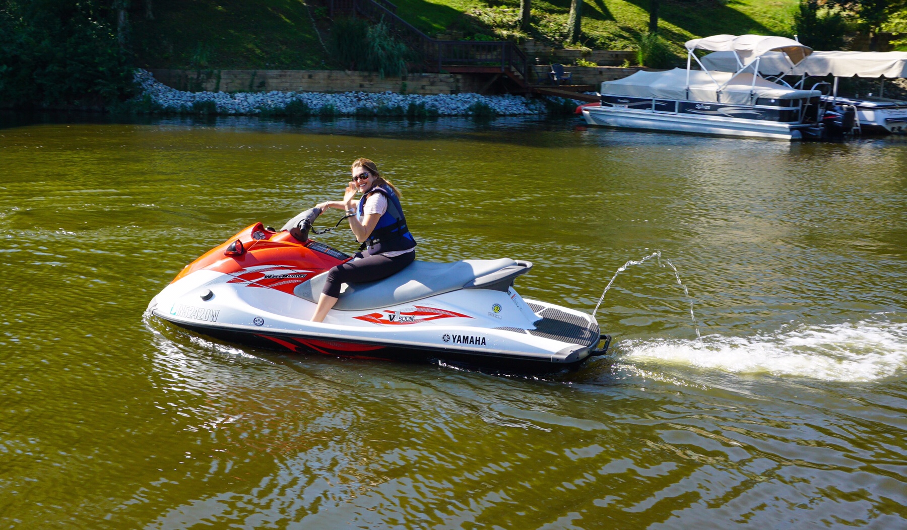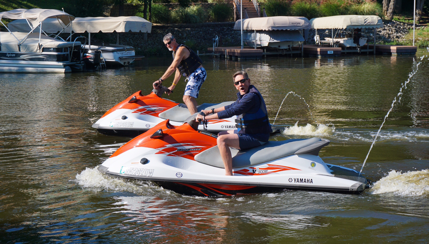 It was time to try out those wave runners (jet skis). It went a lot less well for me then I had expected! I just could not get comfortable with the balance and steering, so quickly gave it up and returned dispirited to watch the nimble Mrs A roar off with Carol.
