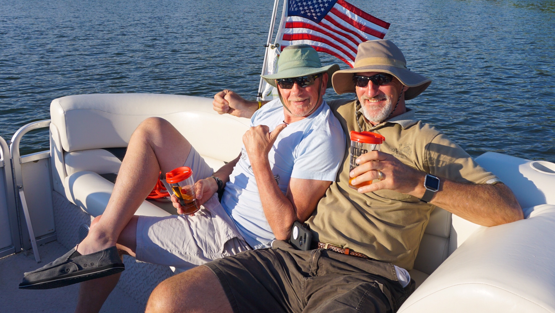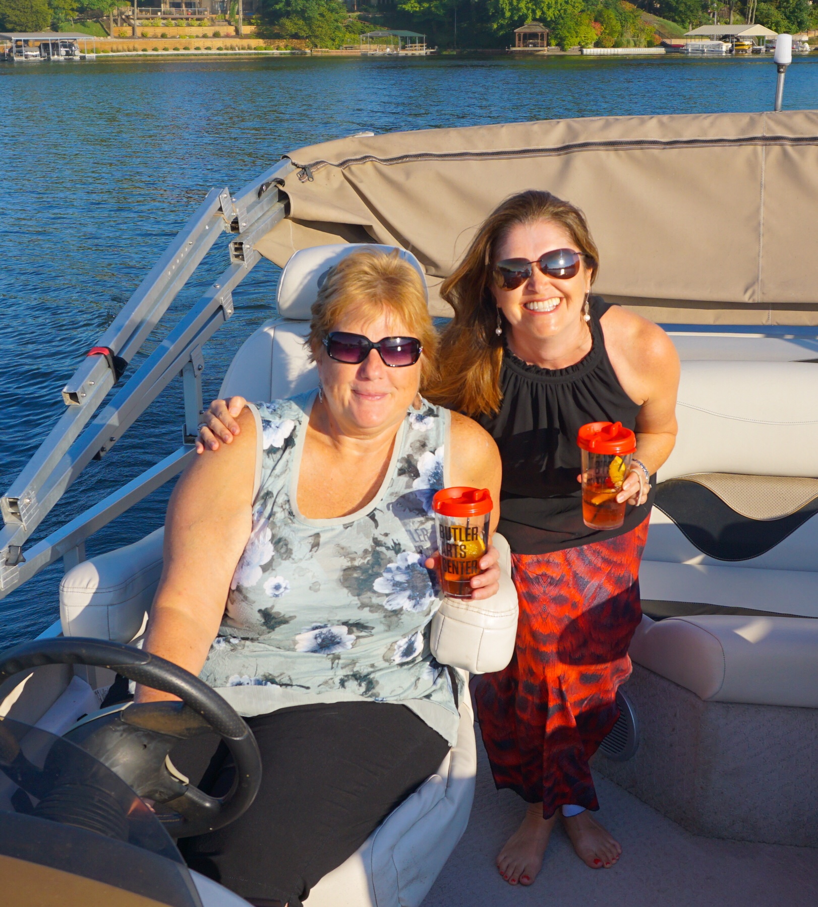 To end this fine day, our last with these guys for a while, we headed off on their boat to potter around the lake and watch the sunset, clutching Manhattan cocktails Carol had prepared for us “to go”.