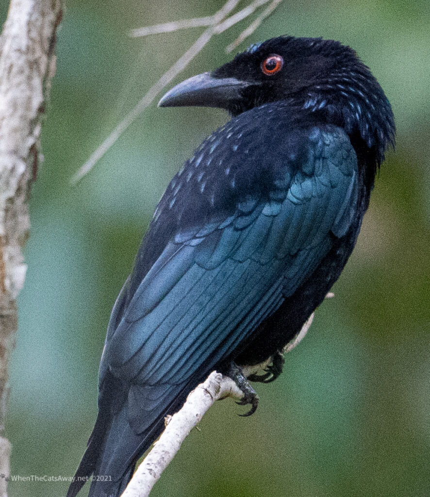 Another day we took a short walk along the coastal path, and had an almost bird free time of it until this handsome fellah turns up. Now here’s a name to conjure with – he (or maybe she they look very similar) is a Spangled Drongo! Curl your tongue round that one. Feels good doesn’t it?